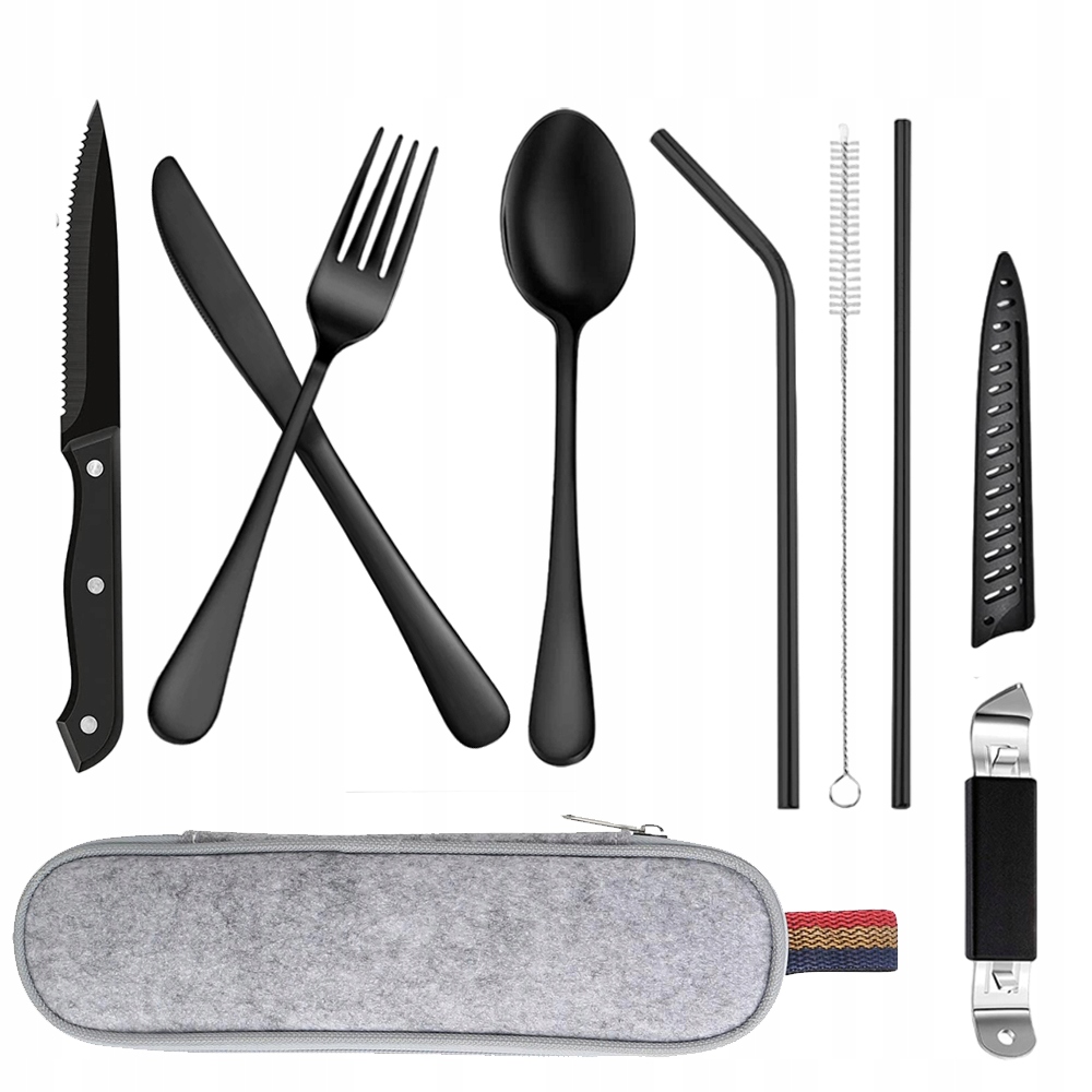 ZESTAW 9EL SZTUĆCÓW KEMPINGOWE NÓŻ WIDELEC ŁYŻKA PRZENOŚNE Z ETUI