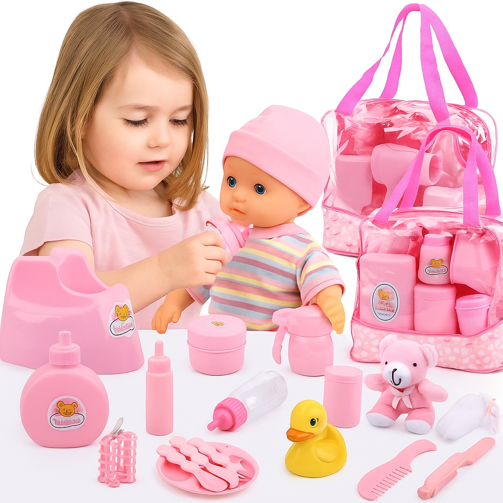 ZESTAW Akcesoriów dla Lalek 28 el. + Torba | Prezent dla Dziewczynki I 3+