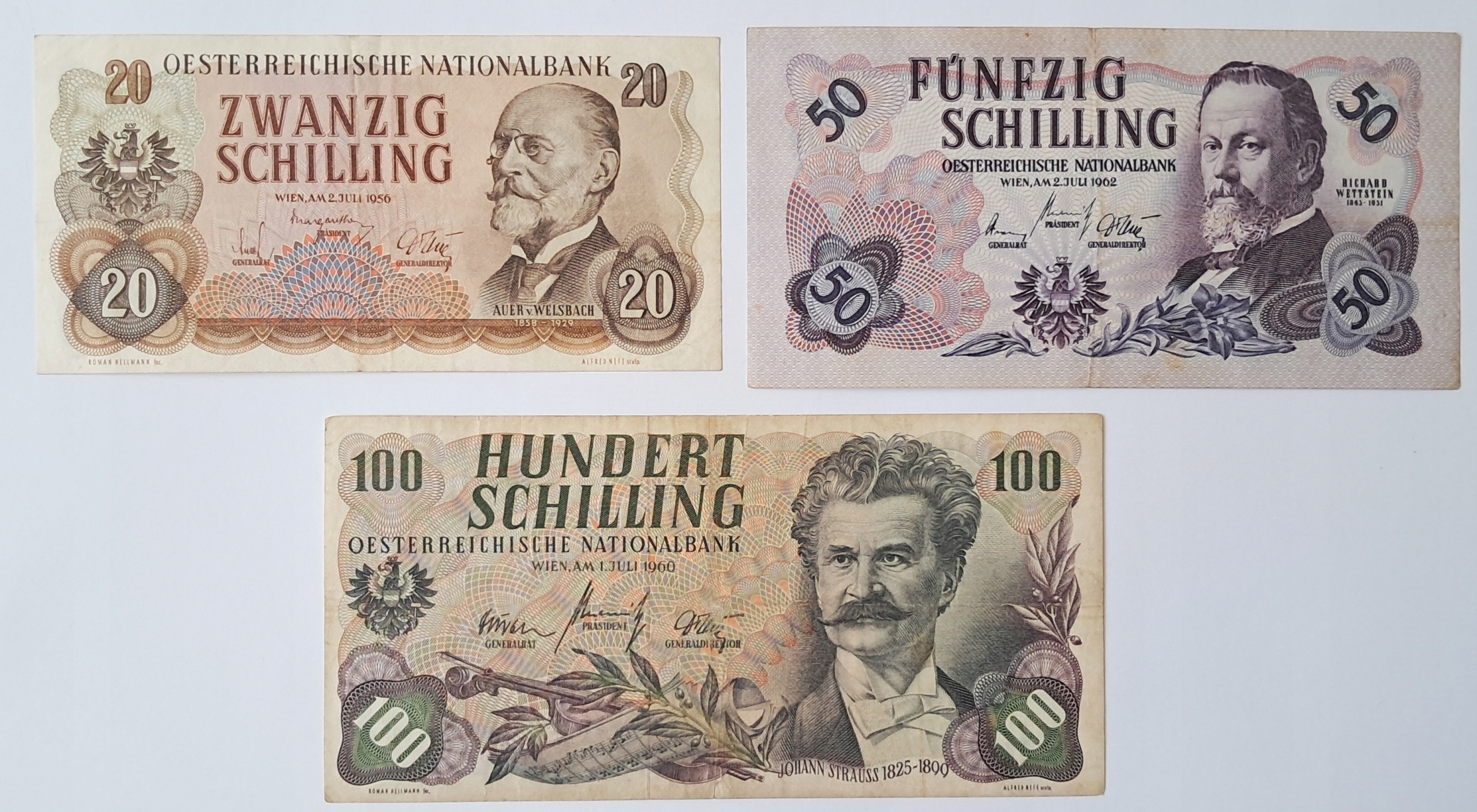 Zestaw Banknotów Austria 20 50 100 Szylingów 1956 - 1960 - 1962