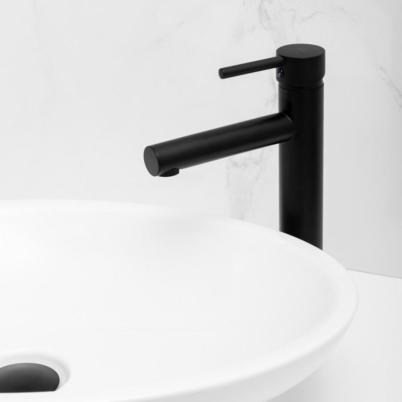 стоячий, однорычажный с фиксированным изливом черного цвета. Отличное качество черной поверхности гарантируется современной технологией порошковой окраски. Керамическая головкаобеспечивает многолетнюю прочность и долговечность.
