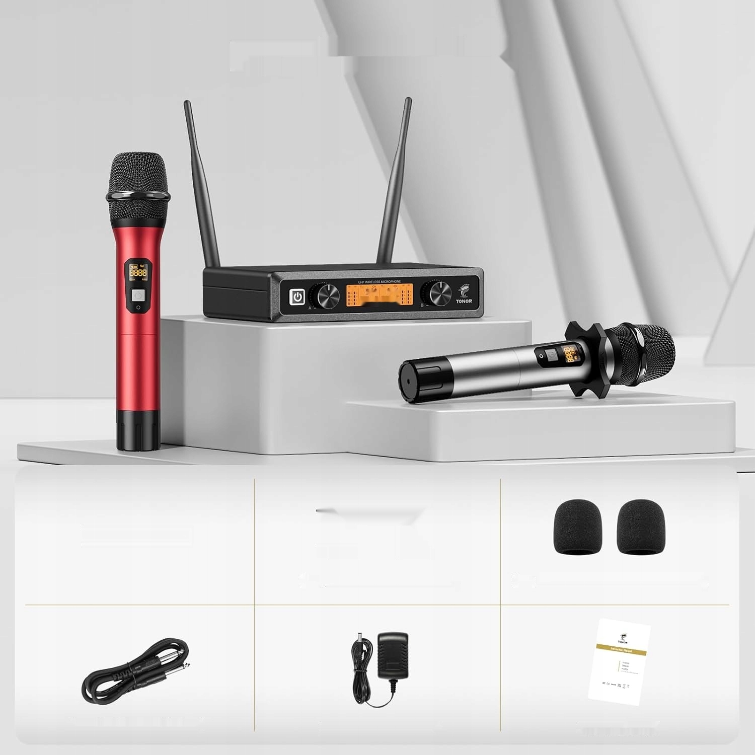 Zestaw bezprzewodowych mikrofonów TONOR TW822 UHF, 60 m zasięgu, do śpiewan