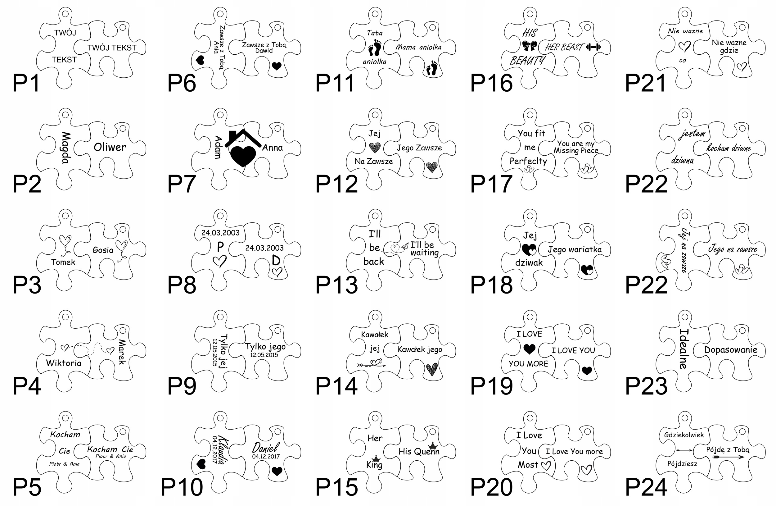 Zestaw breloków w kształcie puzzli z grawerem prezent na walentynki