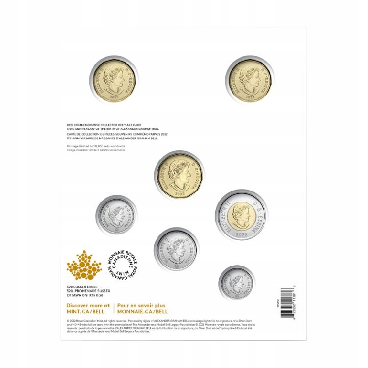 Zestaw Canada: 175. rocznica urodzin Alexandra Grahama Bella 7 monet 2022