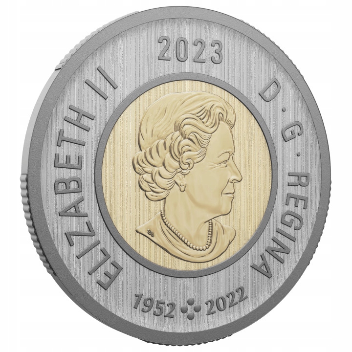 На аверсе изображено изображение королевы Елизаветы II, надписи " ELIZABETH II», «DG REGINA» и «1952-2022», дизайн Сюзанны Блант.