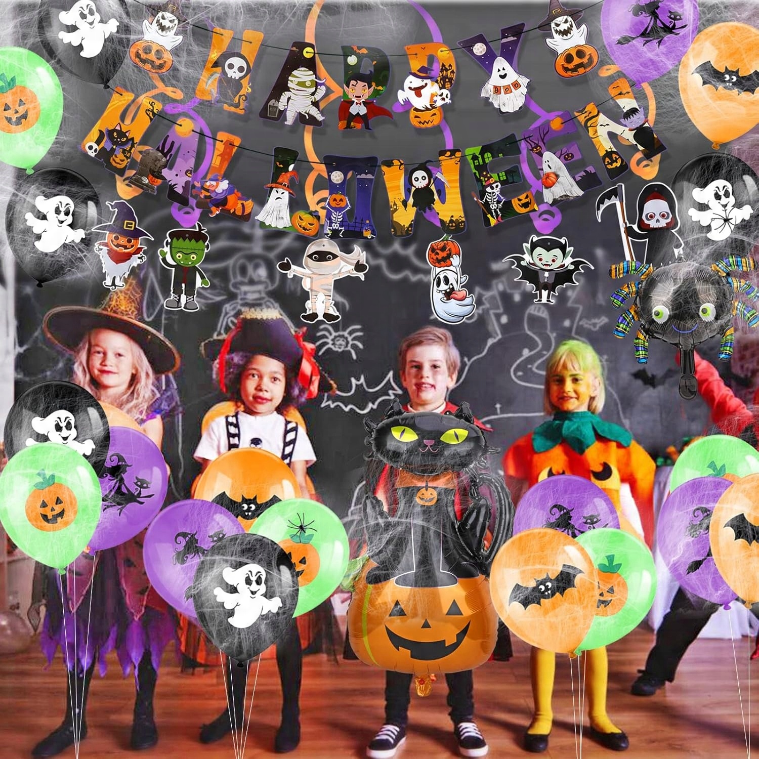 Zestaw dekoracji na Halloween balony girlanda pajęczyna tło fotograficzne