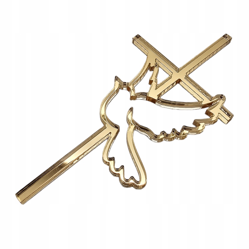 ZESTAW dekoracji na tort komunijny IMIĘ KRZYŻYK złoty Topper na komunie