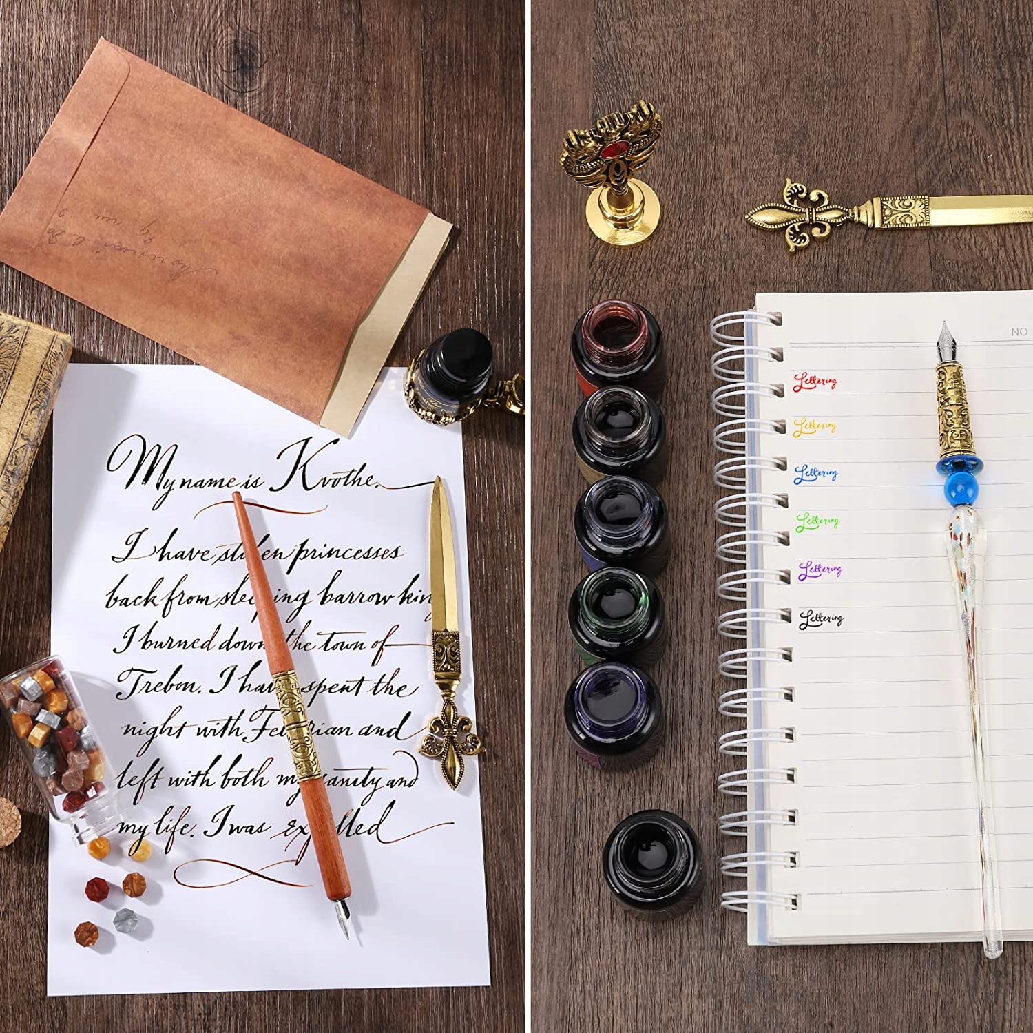 Набор будет использоваться как для письма ручками, обучения каллиграфии, так и для создания красивых и уникальных рукописных приглашений, запечатанных горячим воском.