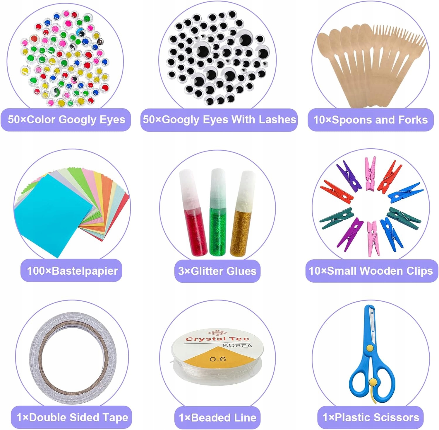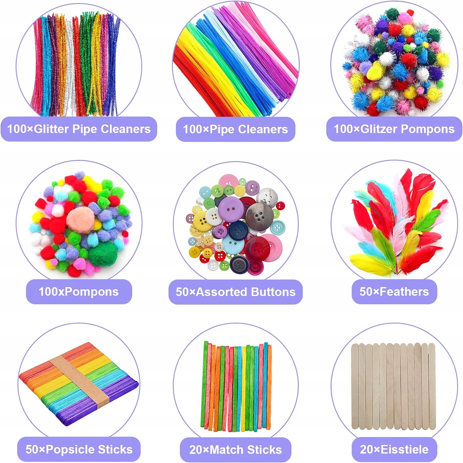 - 【3000+ наборов «Сделай сам» для детей】 Включает 200 средств для чистки трубок, 100 бомбочек с блестками, 100 бусинок, 50 различных пуговиц, 50 перьев, 70 мороженых, 20 спичек. , 50 смешанных цветов из пенопласта, 500 блесток, 50 пенопластовых наклеек, 50 блестящих звезд, хрустальные наклейки, 500 цветов, 100 глаз-каллеров, 10 ложек и вилок, 100 крафт-бумаги, 3 клея с блестками, 10 маленьких деревянных скрепок, двусторонний скотч и безопасные ножницы.