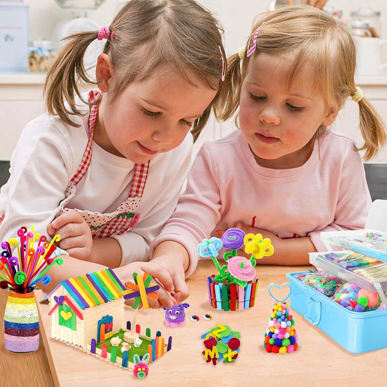 Набор «Сделай сам» для детей, более 3000 деталей. DIY Craft Activity Kids Felt Hobby Creative, цветной понпон, средства для чистки трубок, палочки для мороженого, перья, наклейки, глаза, буквы