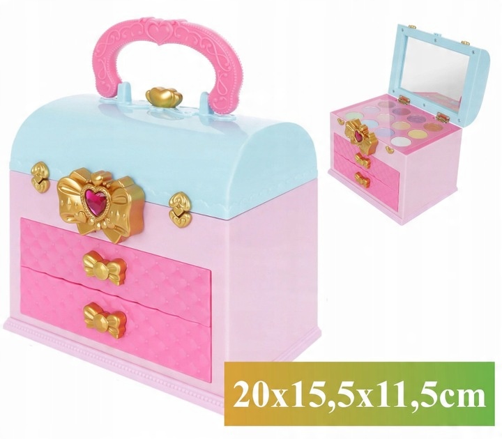 В корпус встроено большое безопасное зеркало, в котором девочка легко сможет посмотрите на себя и оцените сделанный макияж.