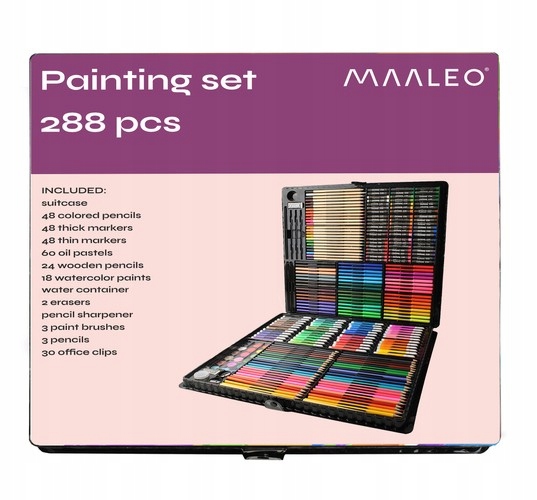 Zestaw do malowania 288szt w walizce Mazaki Flamastry Kredki Farby Wyprawka