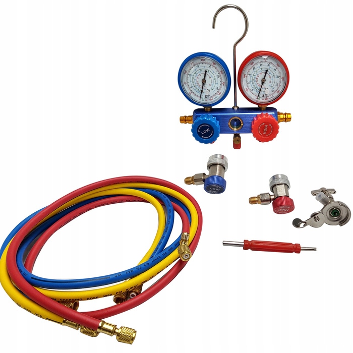 - Манометра с высоким и низким давлением (два манометра со шкалой на факторах r22 , r134 , r12) r134 , r12)