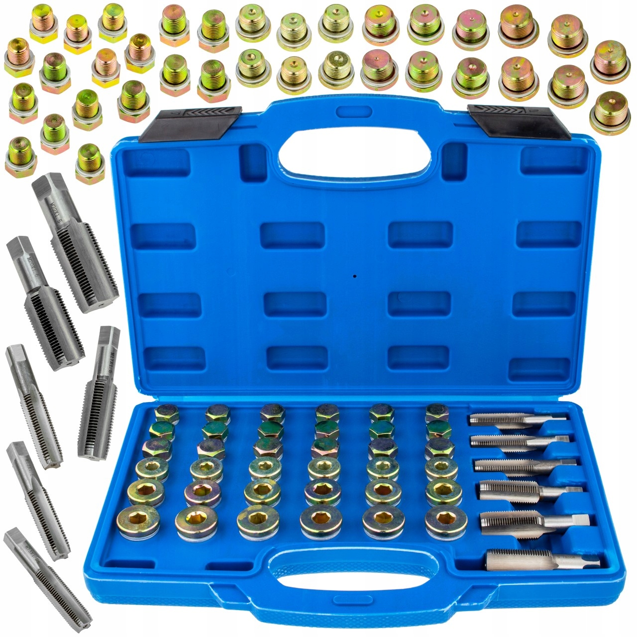 Набор для ремонта резьбы поддона картера, коробки передач и других сливных пробок. Подходит для большинства популярных резьб, используемых в легковых автомобилях и легких грузовиках. Набор предназначен для использования в автомастерских, ремонтных мастерских и сервисных центрах.
