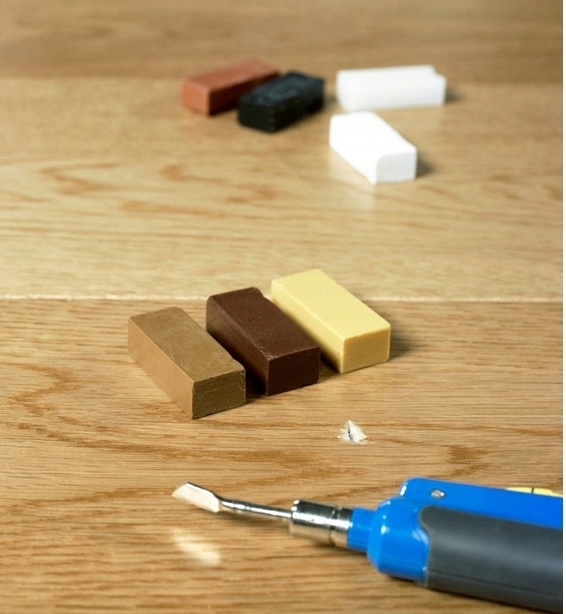 Вы можете просто воссоздать цвет поврежденных досок, используя один из семи кусочков воска, выбранных для покрытия всех цветов Quick-Step и большинство других панелей, дверей или мебели.