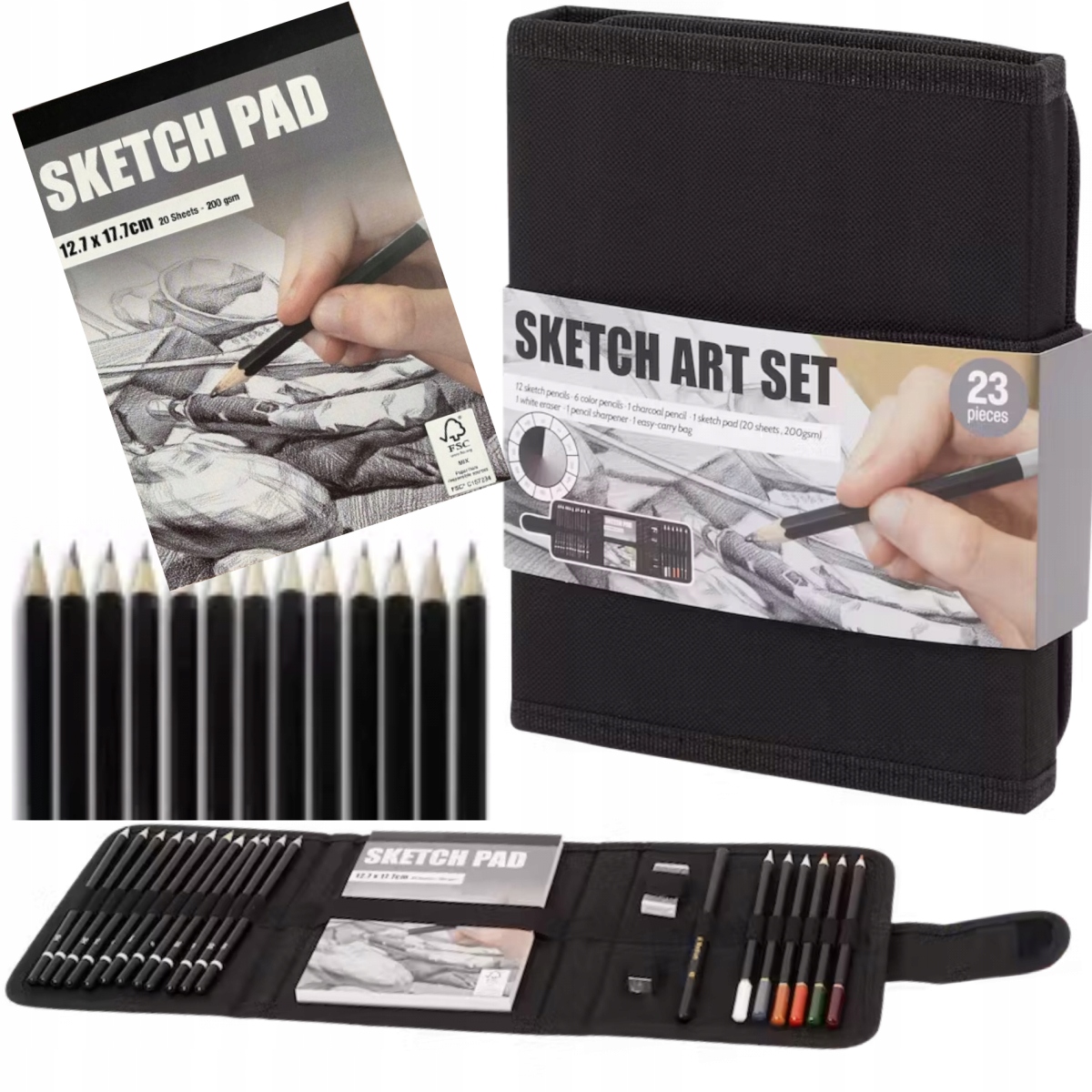 ZESTAW do SZKICOWANIA rysowania ołówki 2 x szkicownik A5 A4 twarda oprawa