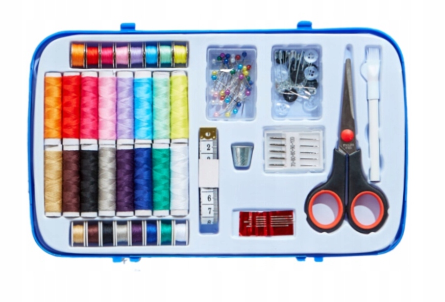 Новое платье, брюки, а может блузка? Швейный набор, оснащенный нитками разных цветов, иглами, булавками и другими швейными принадлежностями, поможет вам создать наряд вашей мечты.