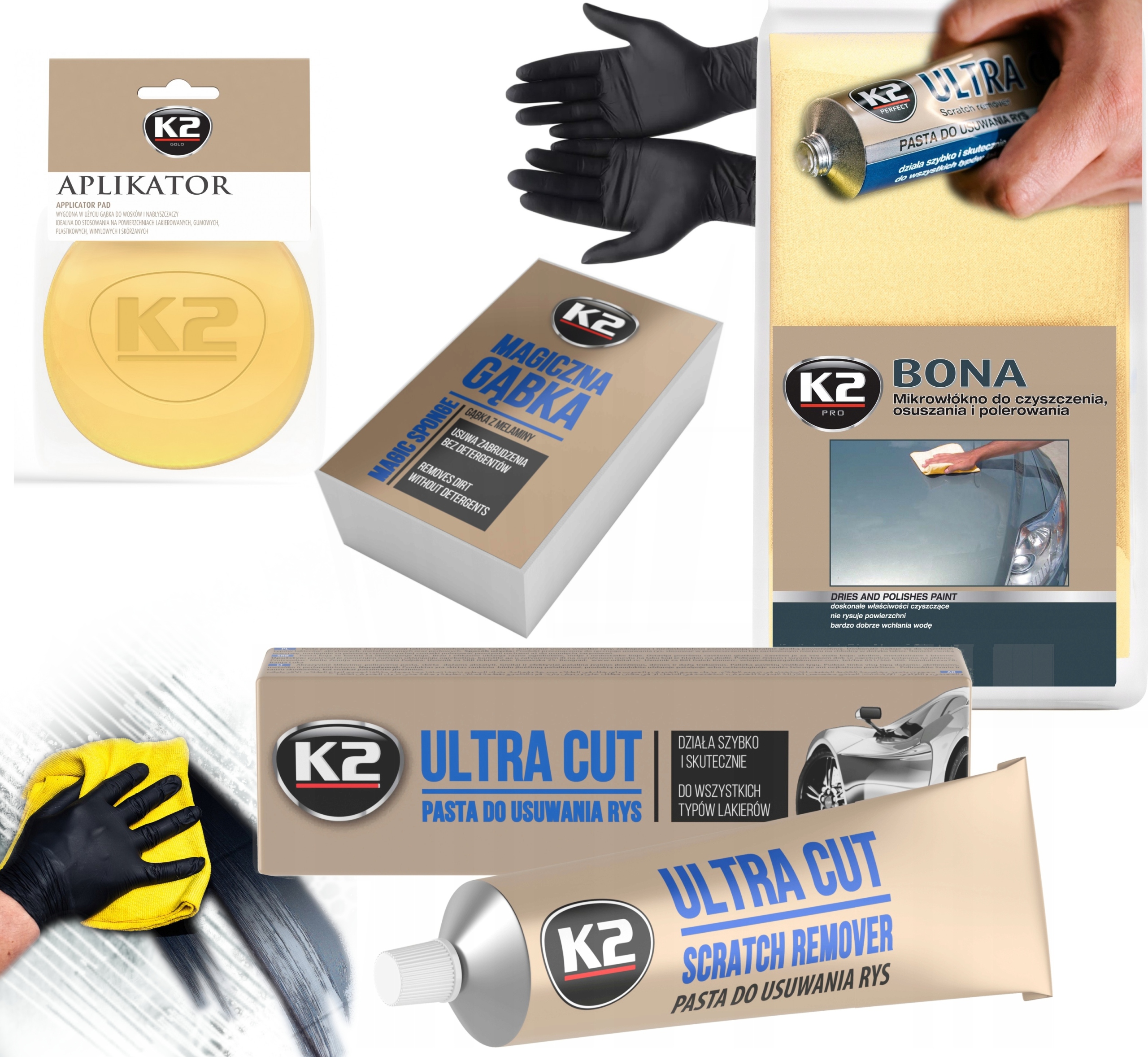 K2 ULTRA CUT — легкоабразивная паста для удаления царапин, царапин и дефектов лакокрасочного покрытия. Прекрасно выравнивает поверхность. Эффективно работает со всеми типами и цветами лаков – традиционных и металлизированных.