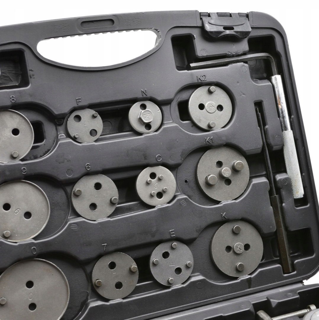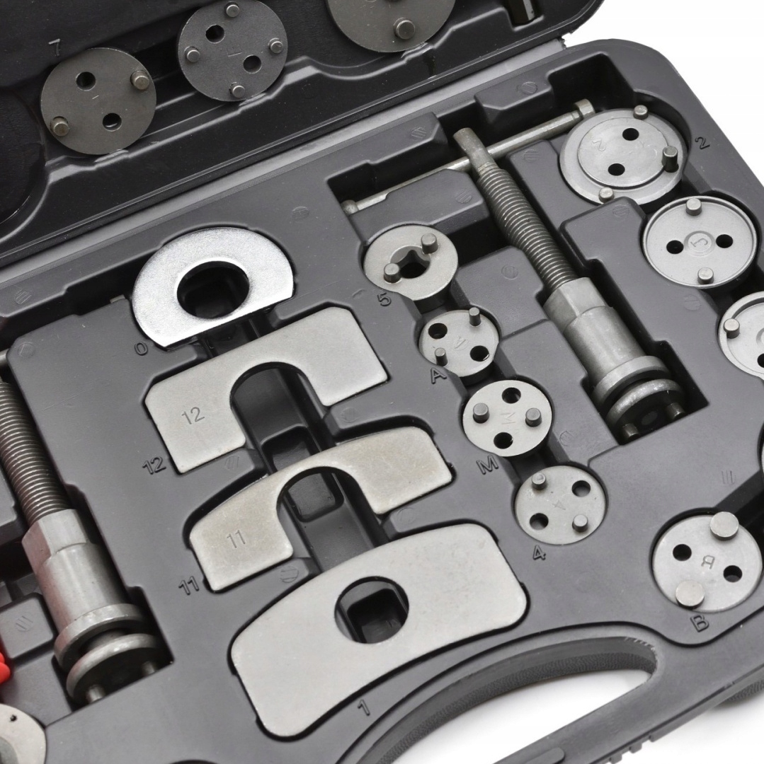 Профессиональный набор из 35 предметов для реверса/сжимания тормозных поршней, необходимый при ремонте автомобилей, оснащенных дисковыми тормозами.