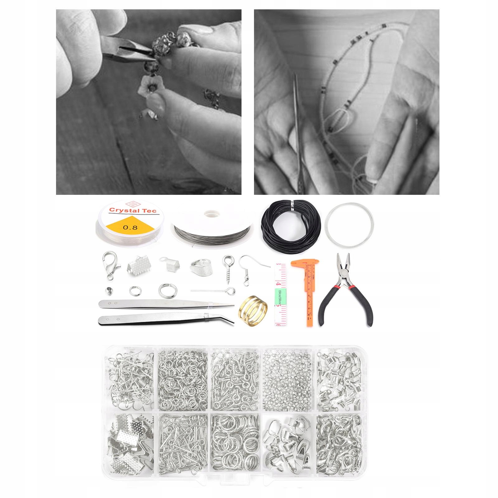 Zestaw do wyrobu biżuterii, metalowe druty do biżuterii, wstążka do wyrobu kolczyków, srebrny zestaw 2