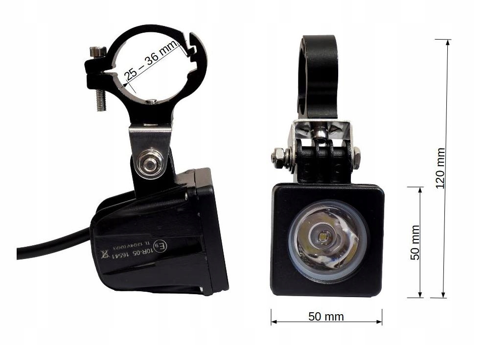 Комплект из двух галогенных светодиодных лампочек CREE мощностью 10 Вт + держатели для трубы диаметром от 25 мм до 36 мм.