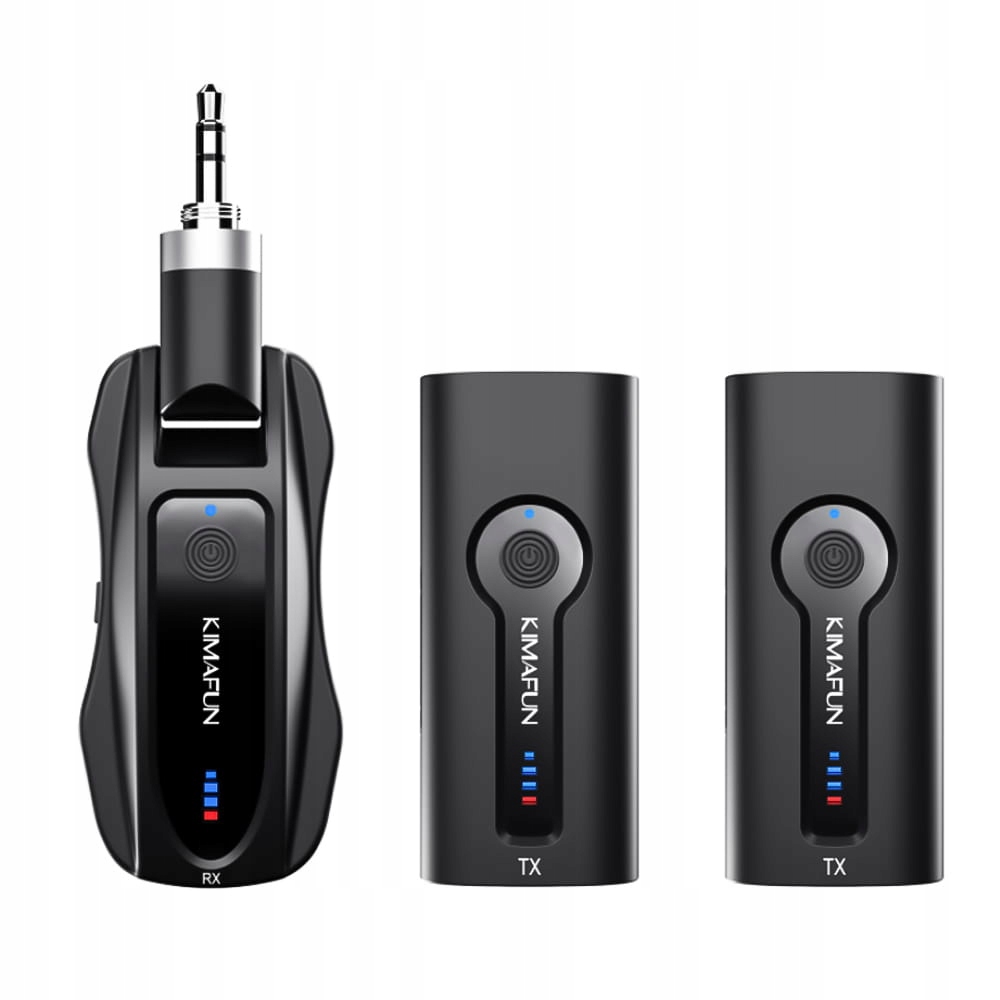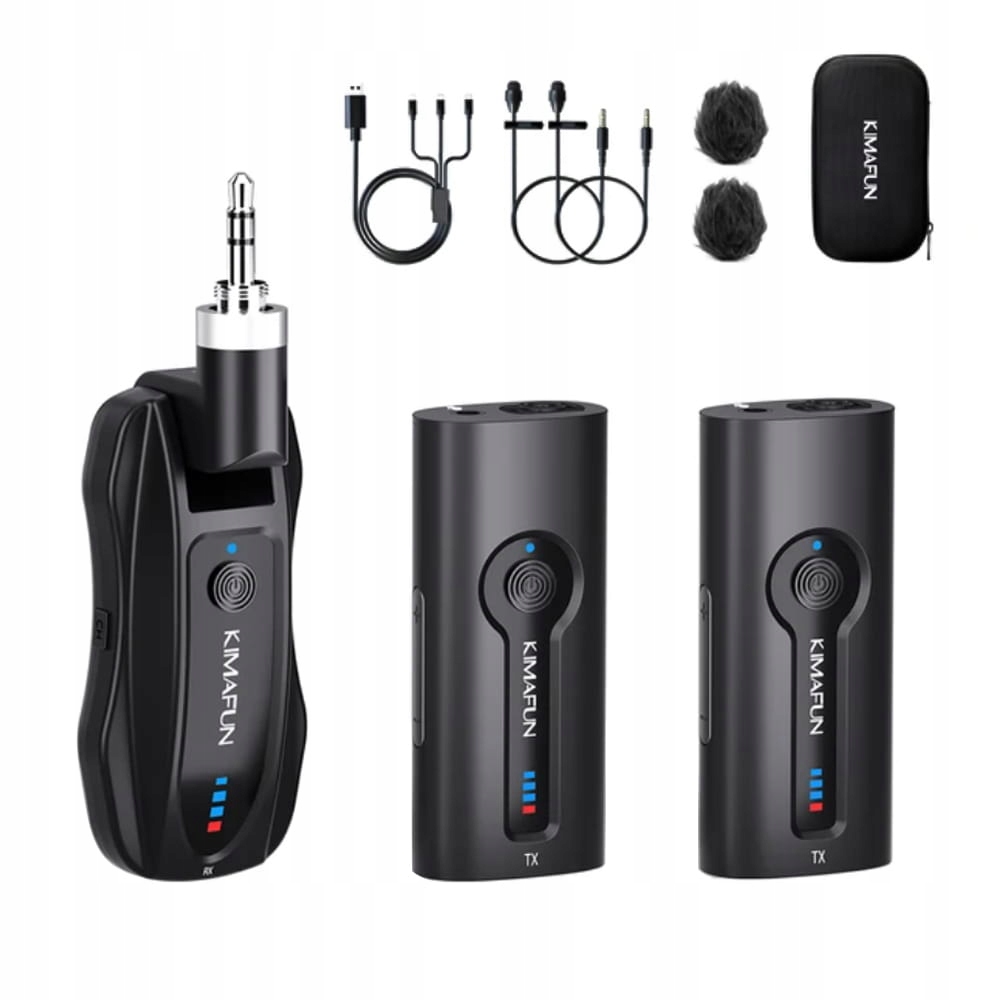 Двойная беспроводная микропортовая системаKimafun KM-G70-1 предназначена для работы с активными громкоговорителями, звуковыми системами, усилителями и звукомикшерами мощностью более 15 В б>. Он включает в себя два передатчика со встроенными микрофонами и приемник, оснащенный стандартным аналоговым выходом мини-джек 3,5 мм. Комплект работает по принципу plug & play.