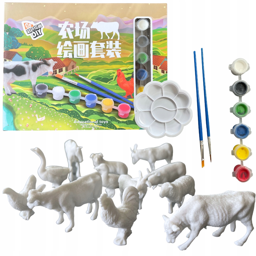 ZESTAW FIGUREK DO MALOWANIA ZWIERZĘTA DOMOWE+FARBY