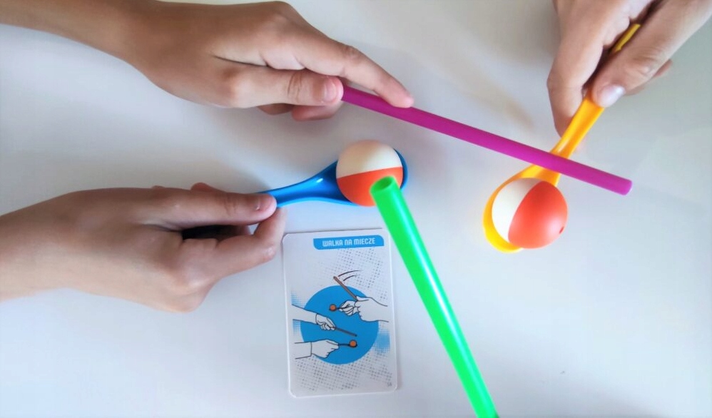 В комплект входит набор реквизита, благодаря которому мы сможем участвовать в аж 55 различных конкурсах, описанных на карточках с заданиями.
