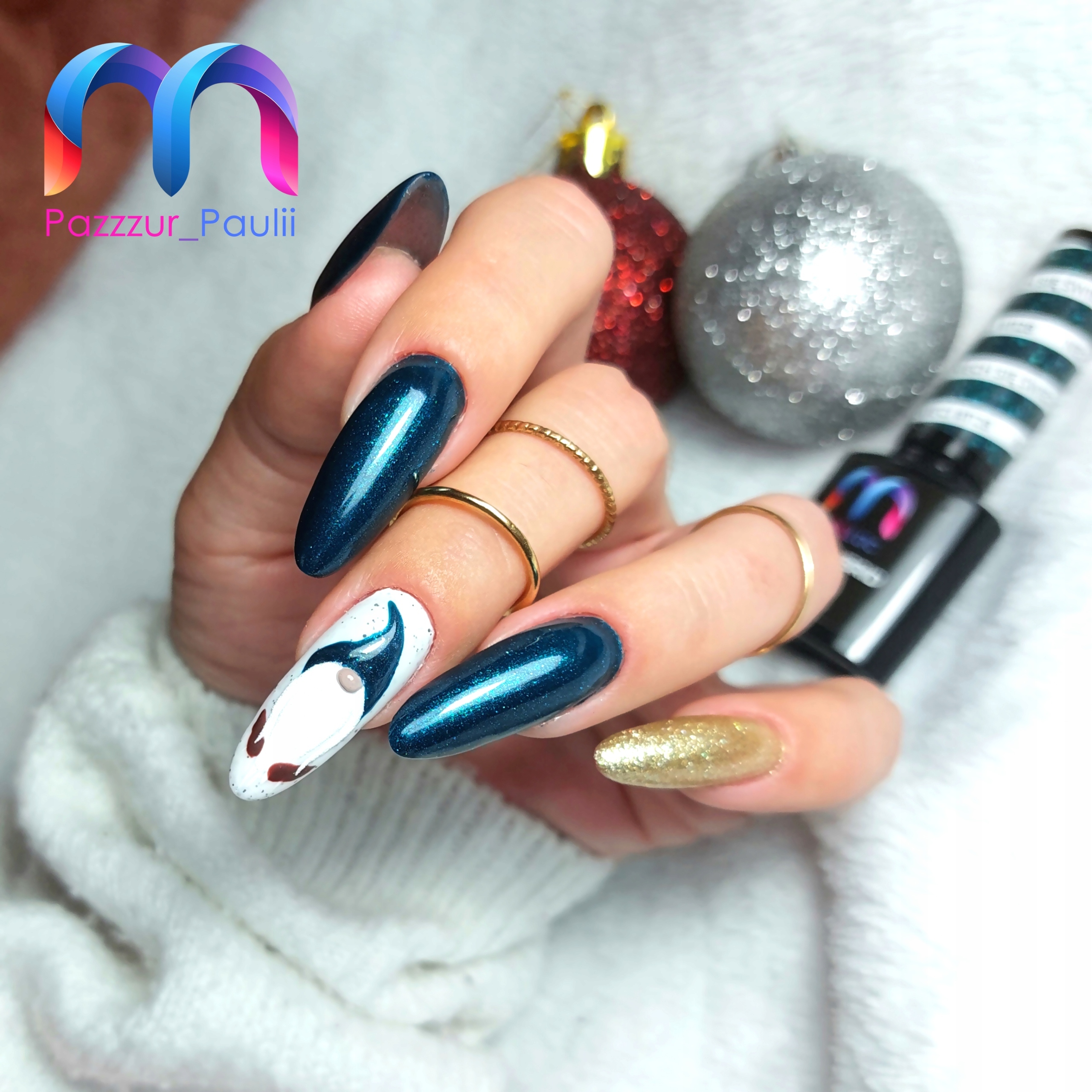 Гибридный набор из 15 зимних рождественских лаков для ногтей MaluLac, наклеек и лент.