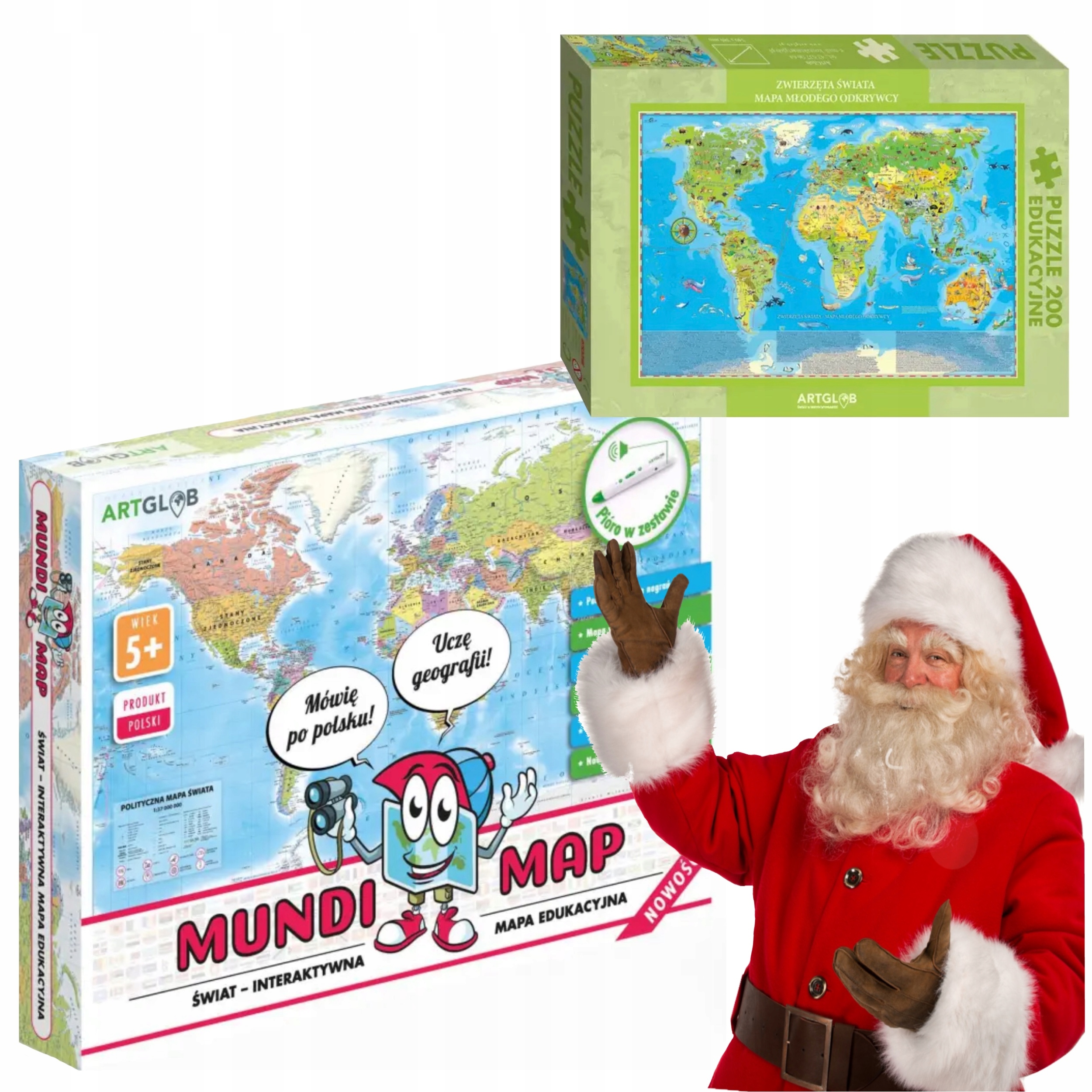 Zestaw INTERAKTYWNA MAPA ŚWIATA MUNDIMAP plus PUZZLE Europa ze zwierzętami