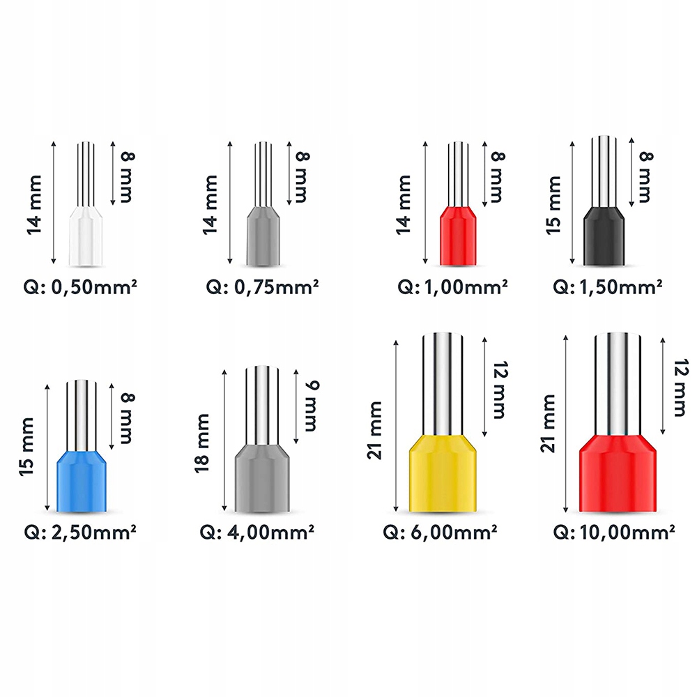 Zestaw KABLOWA TULEJKI Sztukami Końcówek Elektrycznych kablowych 2000szt