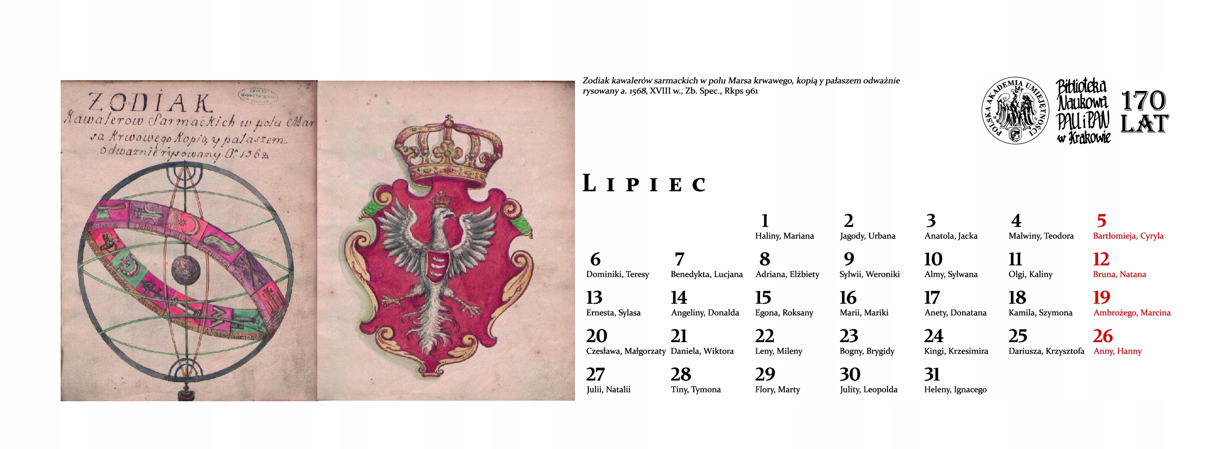 В этом году Научная библиотека ПАУ и ПАН отмечает свое 170-летие. дня рождения, а на страницах календаря вы сможете увидеть отрывки из ценных и богатых коллекций - образцы пергаментов, старинных гравюр, картографии, рисунков, рукописей, экслибрисов, графики, фотографий.