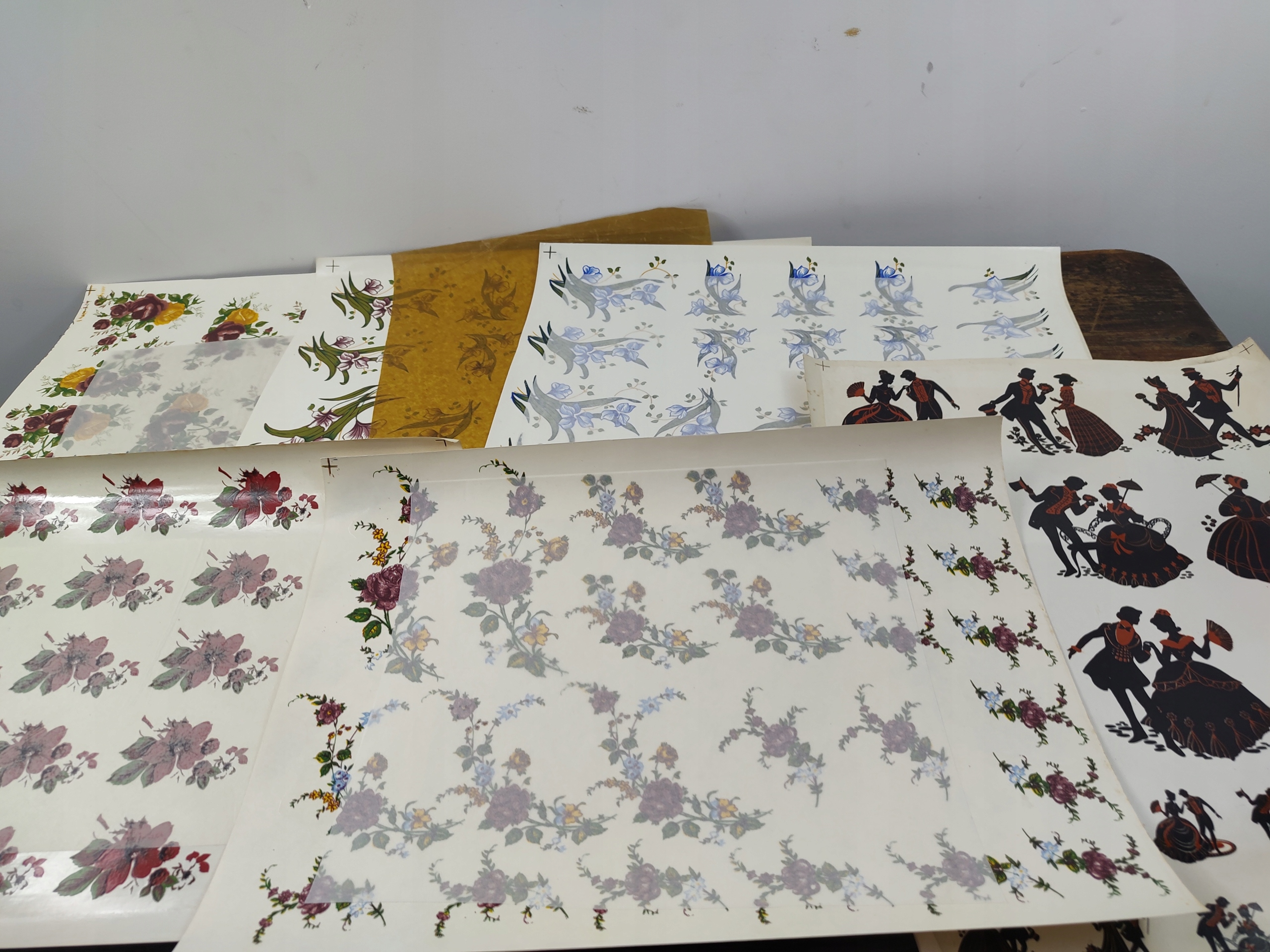 Zestaw kalkomanii ceramicznej naszkliwna z lat 80