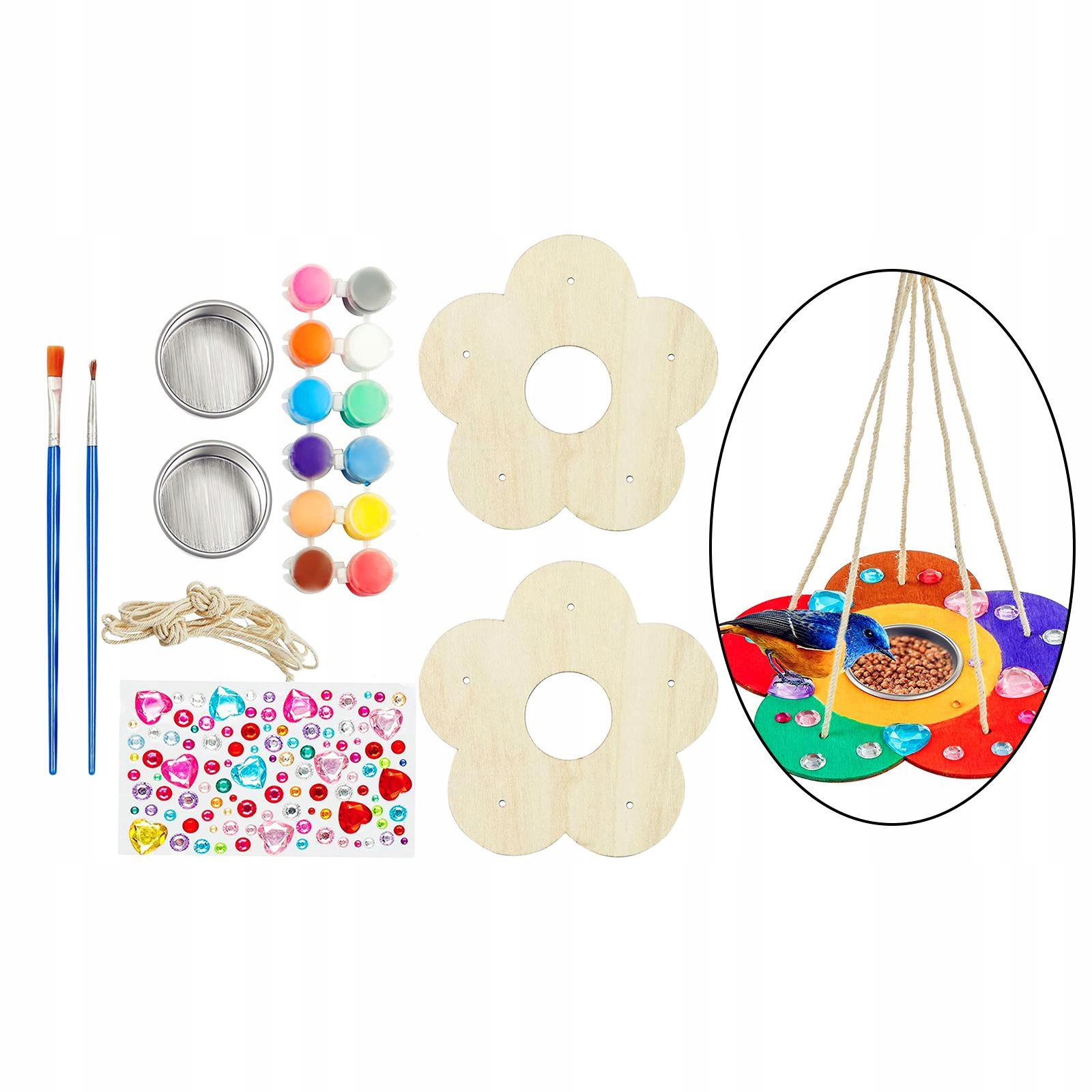 В комплект поставки входят: 2 пластины с краской, тарелки кормушки для птиц, 2 кисти, 2 веревки и 1 декоративная наклейка.Поверхности кормушек вредны, малы для покраски, отделка развешивания в саду или дворе для птиц