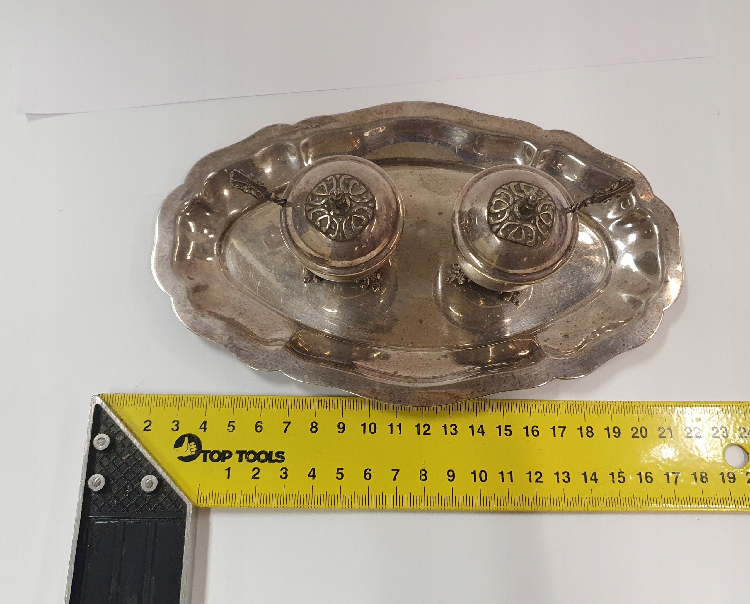 Набор солонок. Подписан логотипом филиала WARMET в Жешуве, то есть знаком R-Resovia (внутри сосуда и на крышке). В комплект с солонками входят оригинальные, фирменные чайные ложки (тоже подписанные).