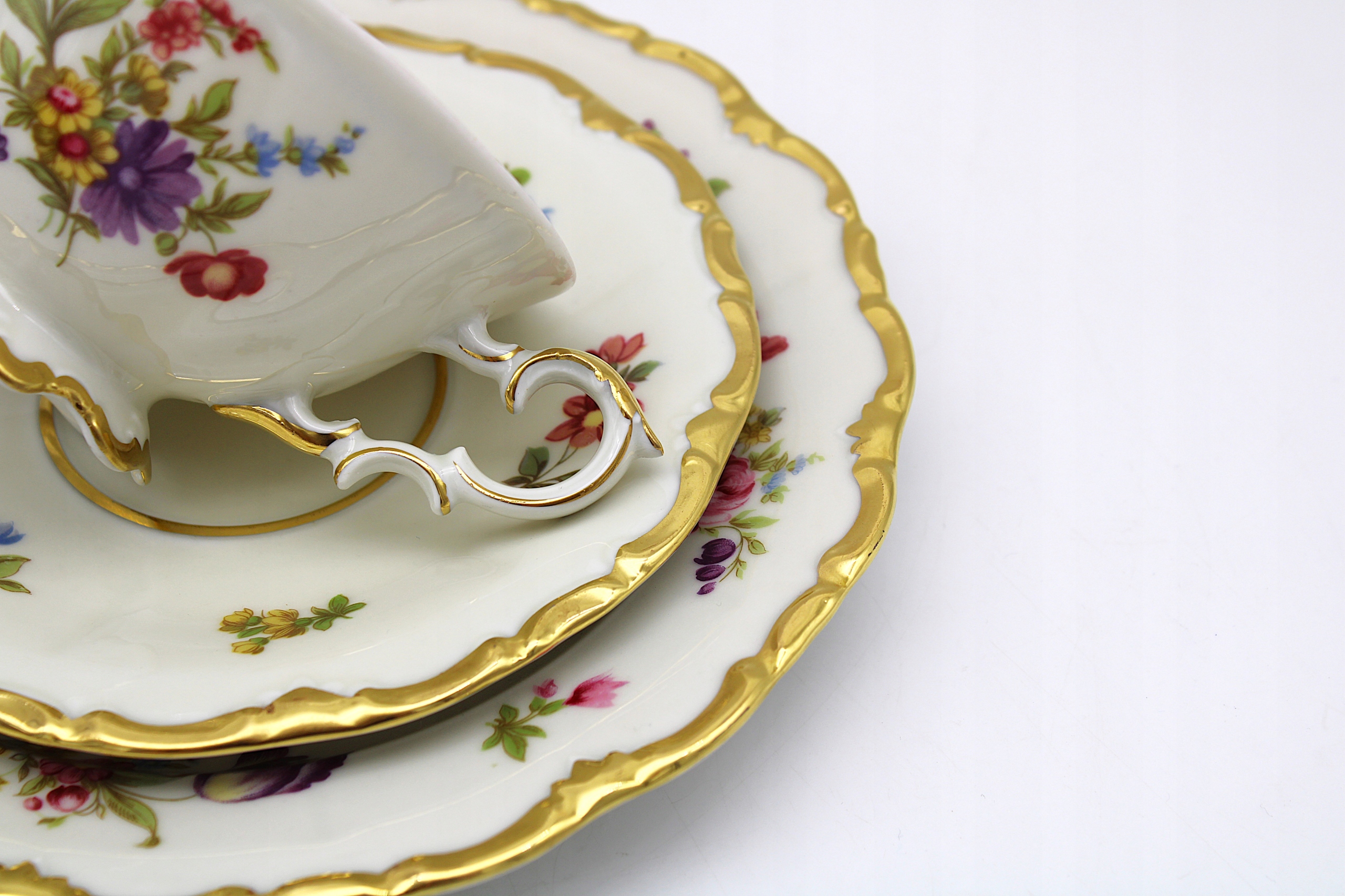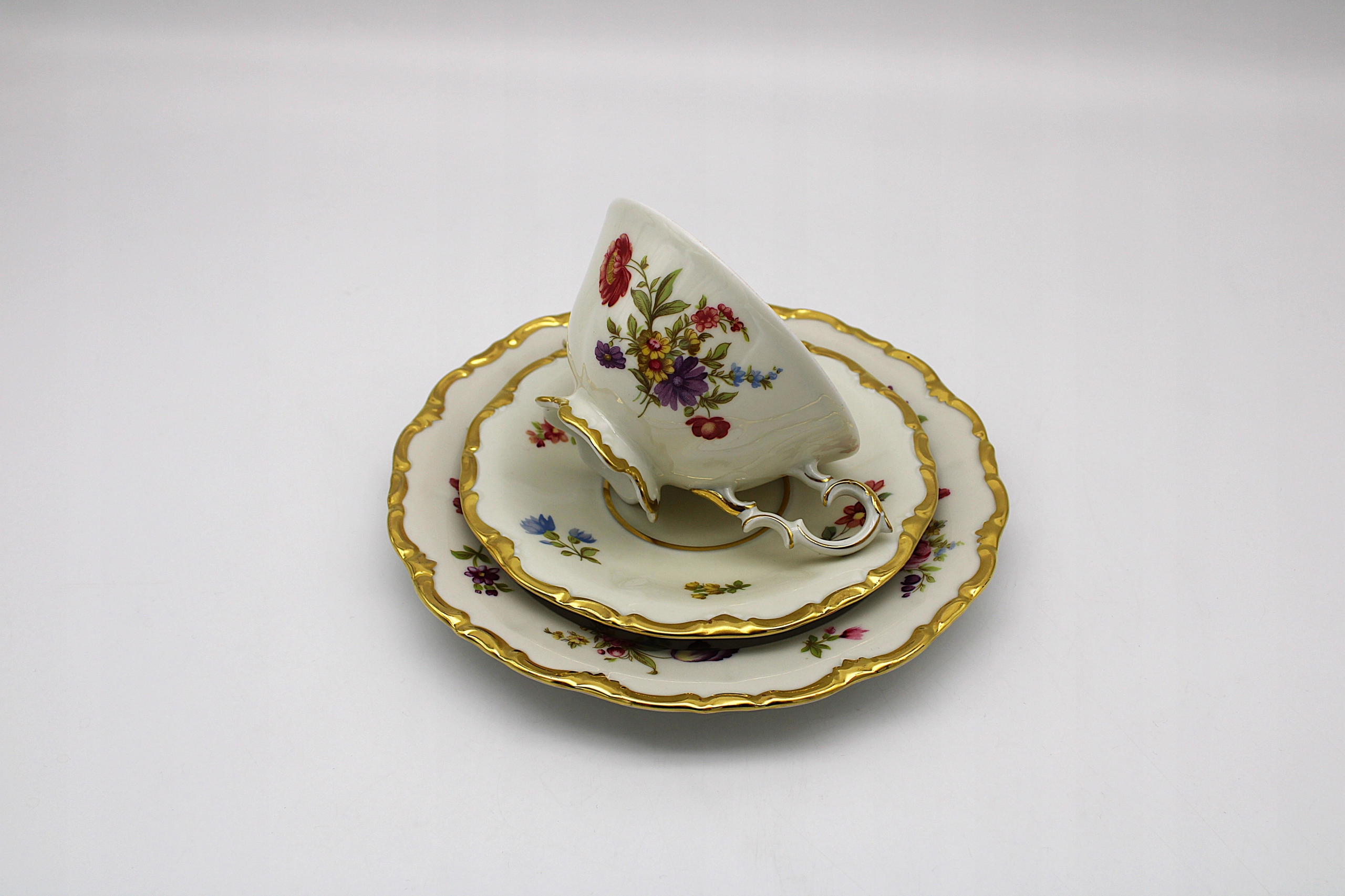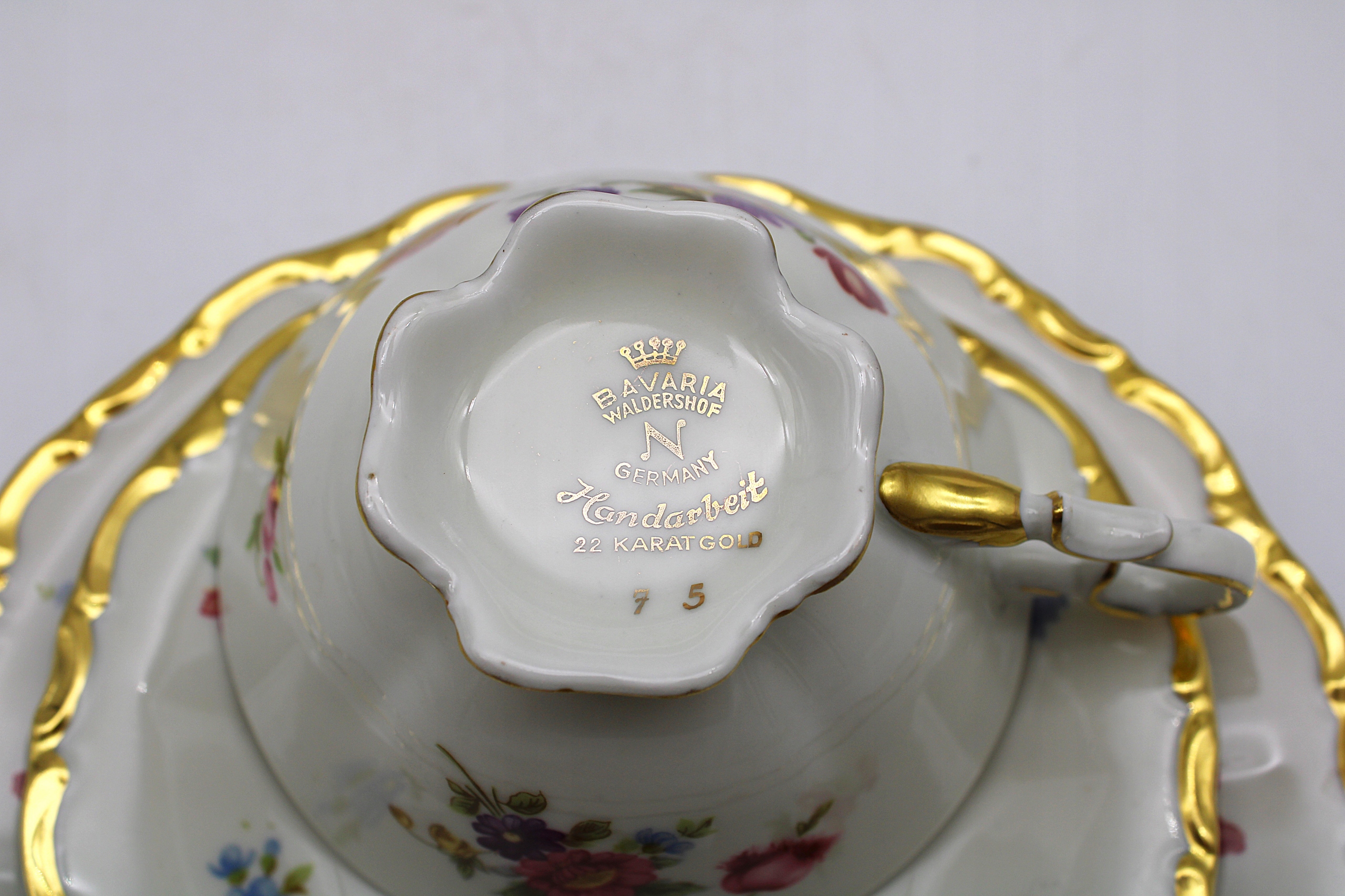 ZESTAW KAWA - HERBATA PORCELANA WALDERSHOF - BAVARIA ZŁOCONE ZŁOTEM