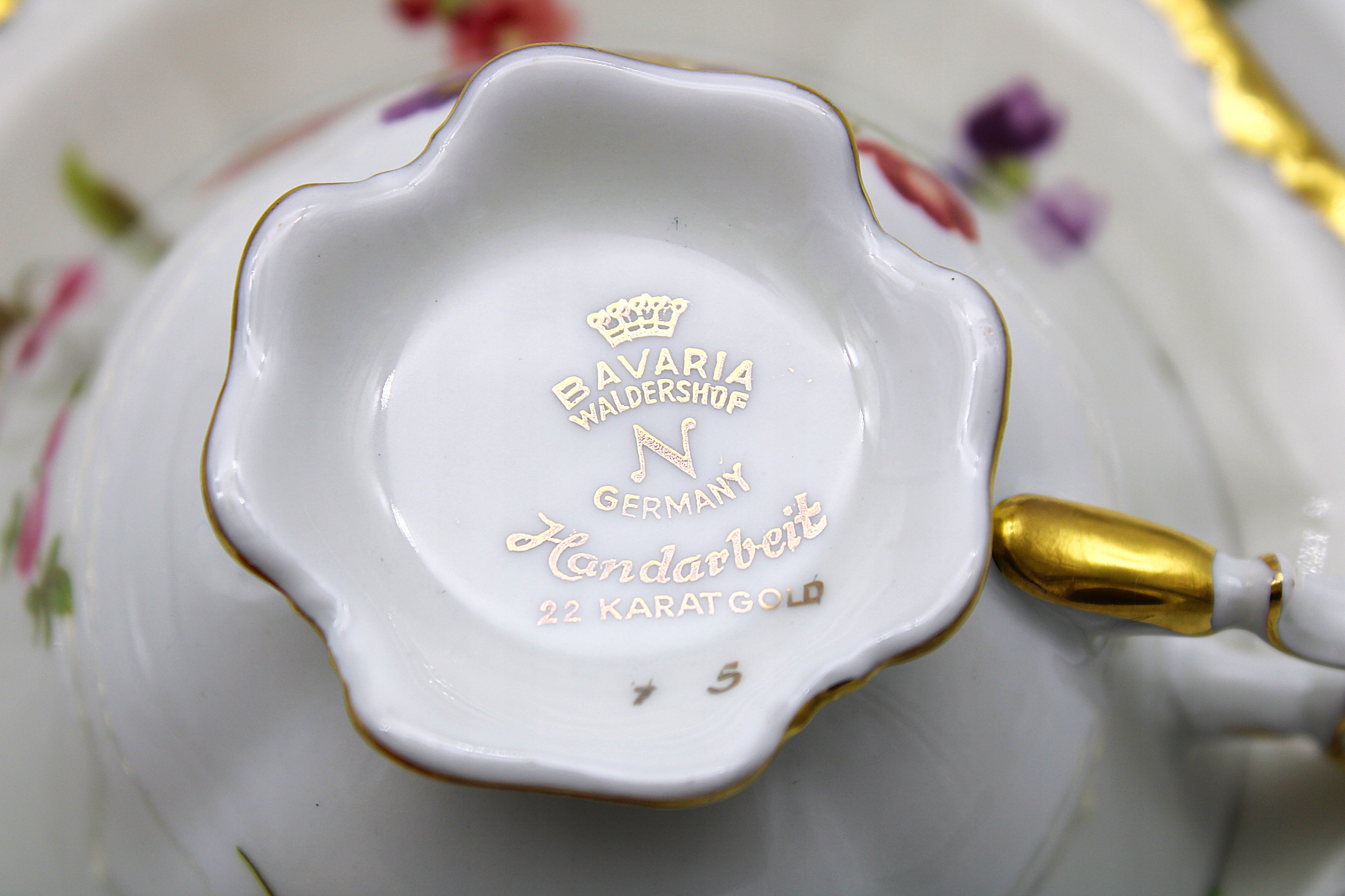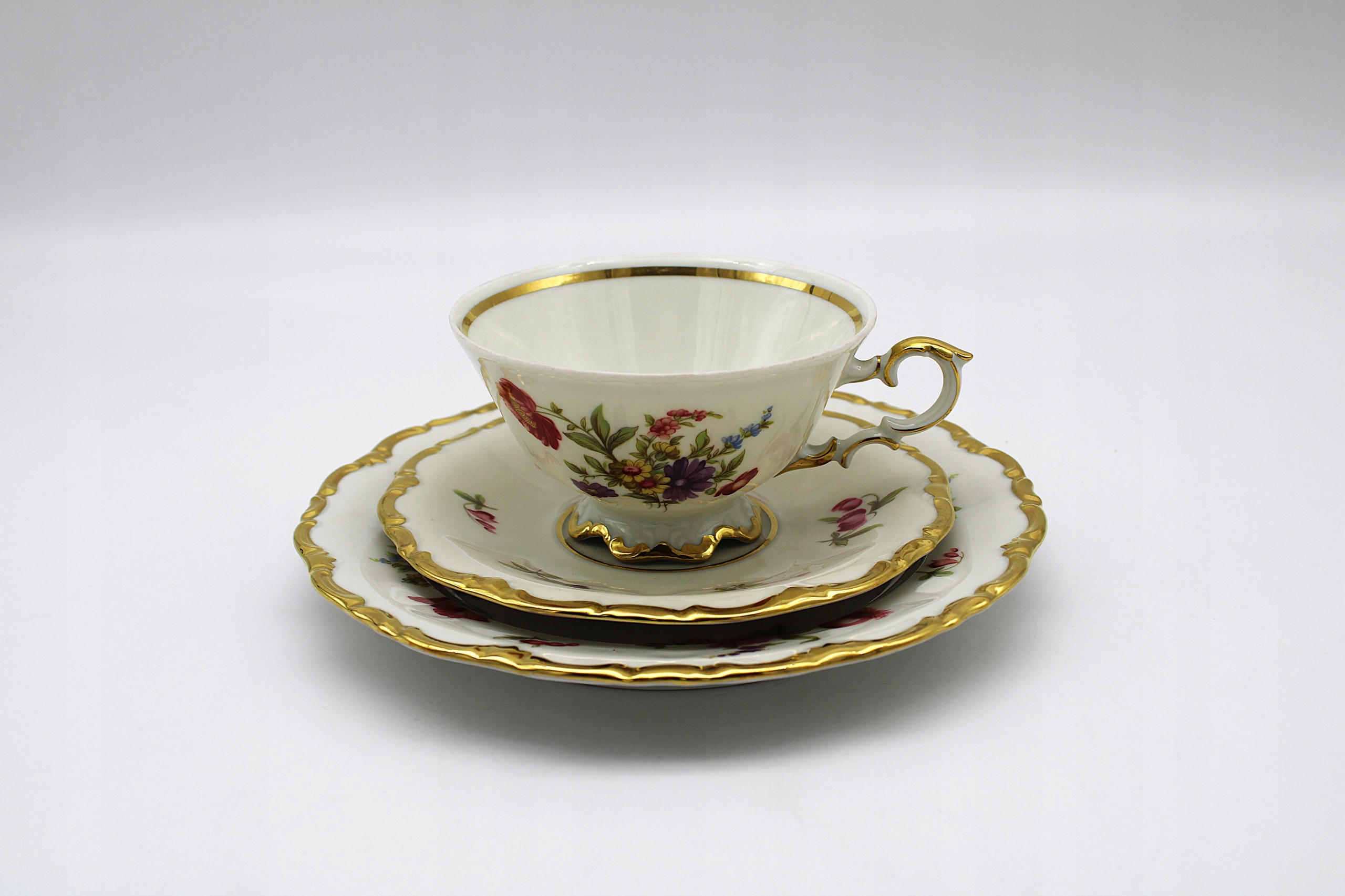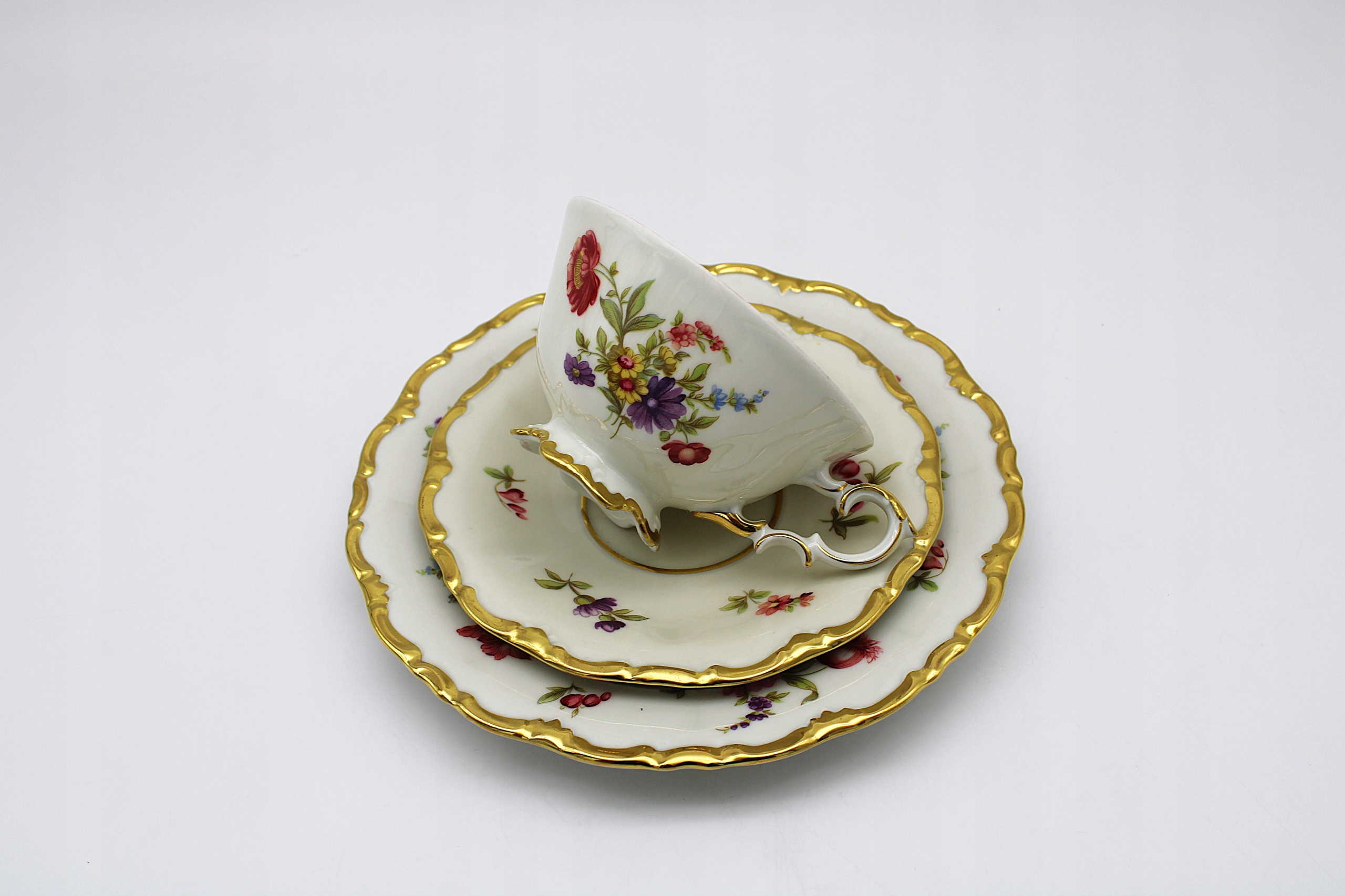 ZESTAW KAWA - HERBATA PORCELANA WALDERSHOF - BAVARIA ZŁOCONY ZŁOTEM