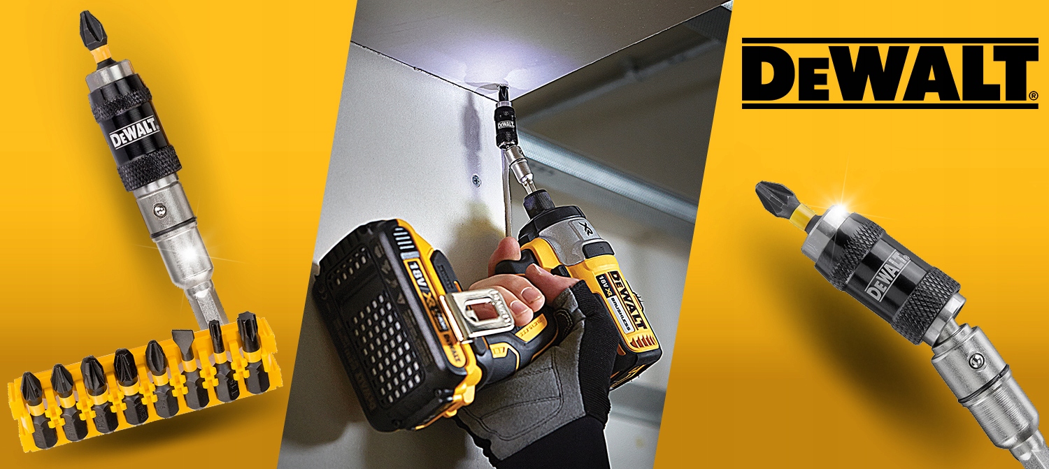 ZESTAW KOŃCÓWEK WKRĘTARSKICH uchwyt kątowy z 8 bitami mag. DeWALT DT70518T
