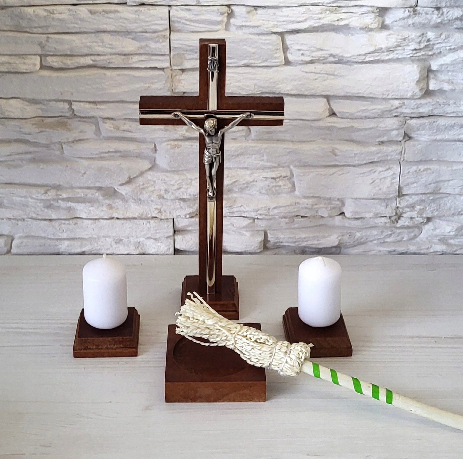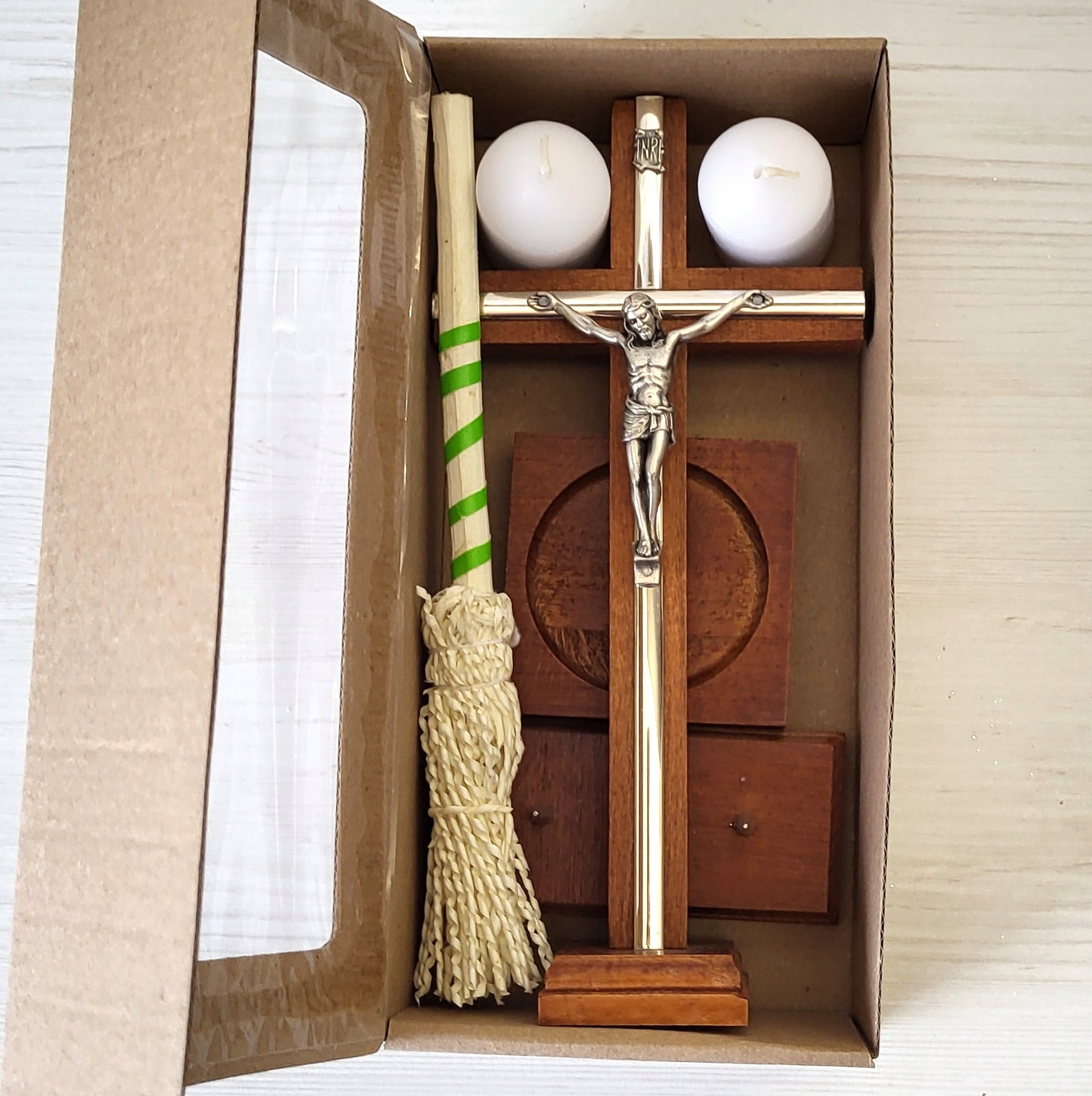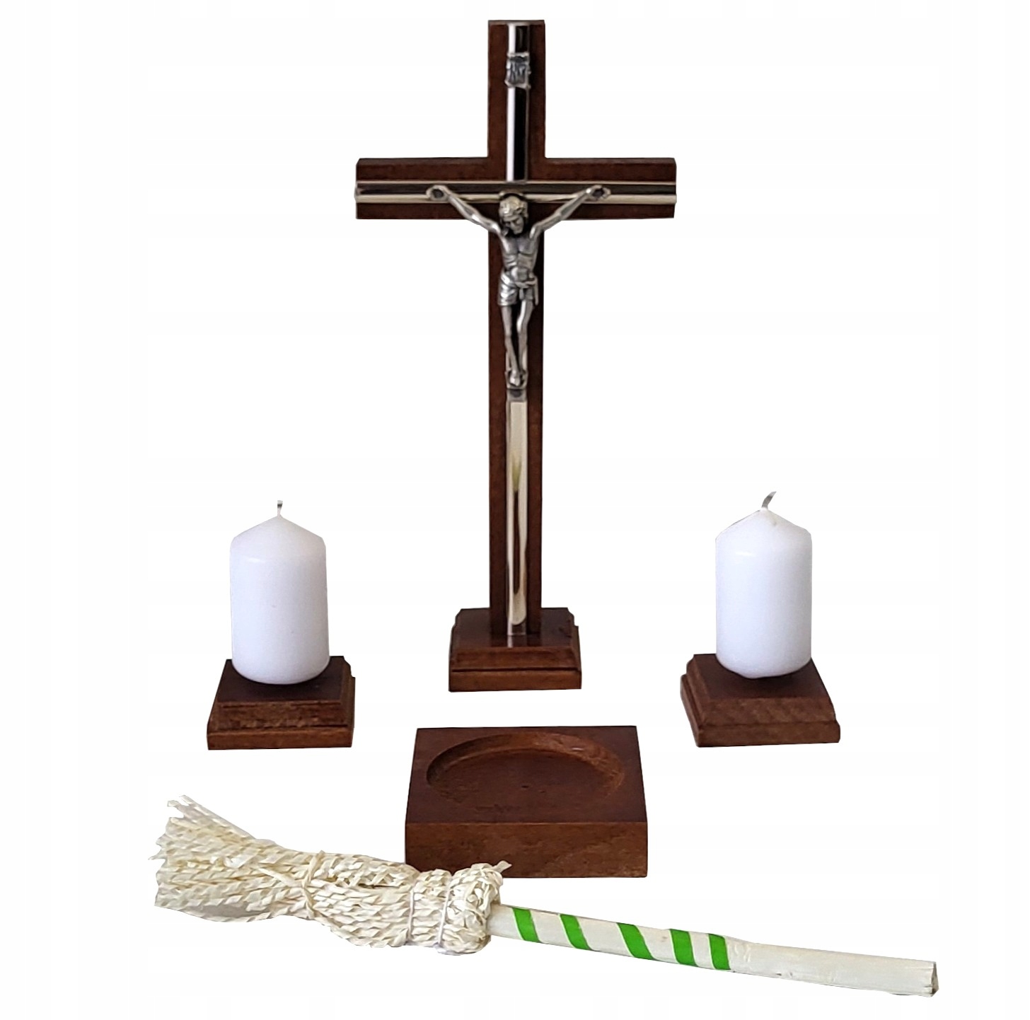 ZESTAW KOLĘDOWY KOMPLET DREWNIANY KRZYŻ ŚWIECE ŚWIECZKI TALERZYK KROPIDŁO