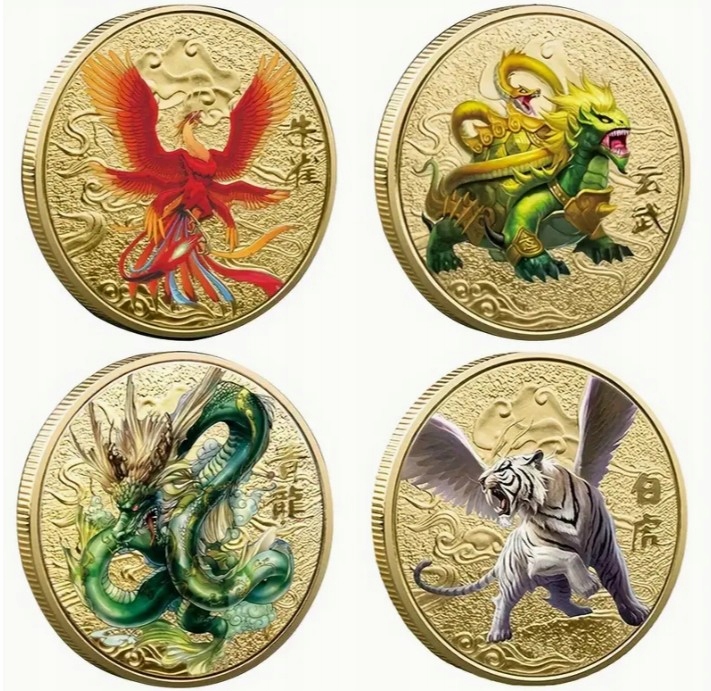 Zestaw kolekcjonerskich monet?, medali? mitycznych stworzeń Feng Shui 4 szt