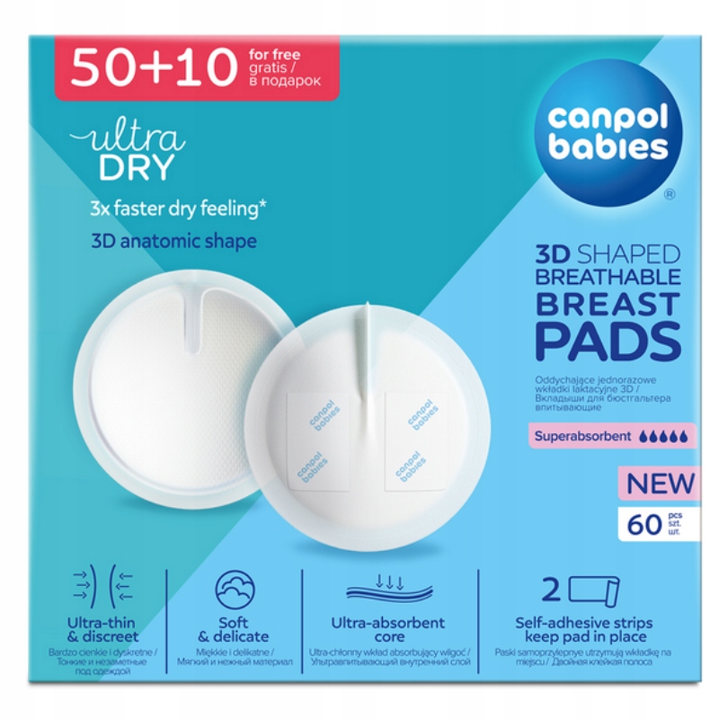 Прокладки для кормления Canpol Babies обеспечивают превосходную защиту и уникальное ощущение сухости и свежести b> как днем, так и ночью. Благодаря использованию инновационных технологий они обеспечивают в 3 раза более быстрое ощущение сухости по сравнению с предыдущими моделями.