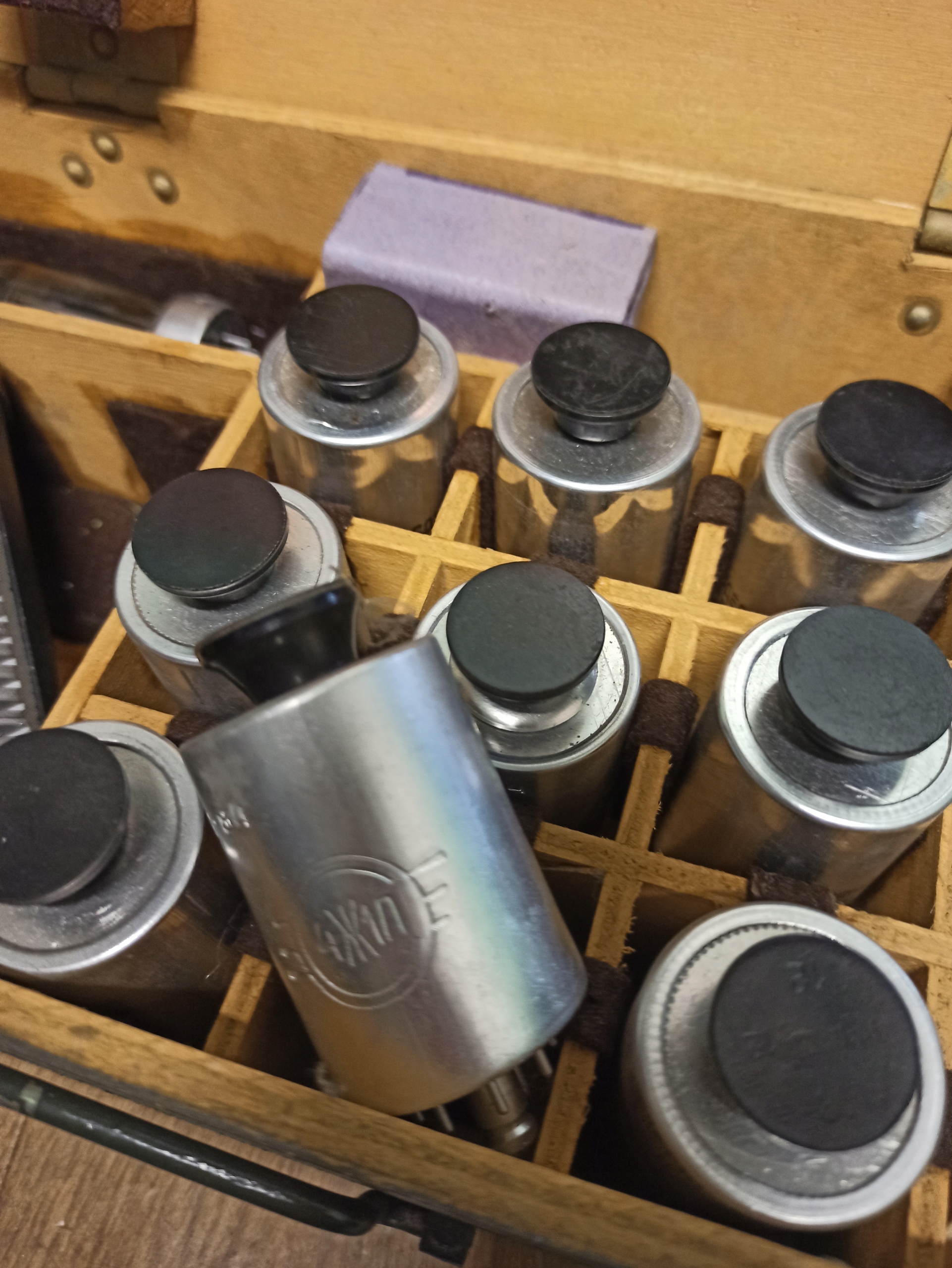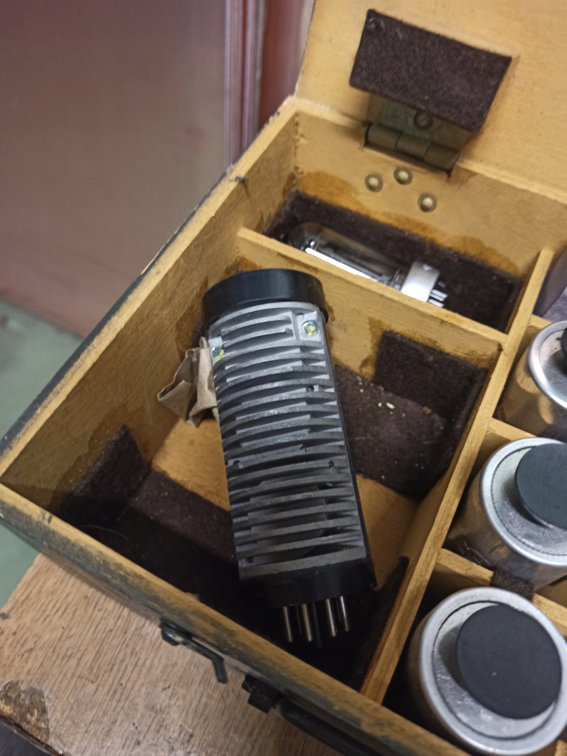 Zestaw lamp elektronowych w skrzyni wojskowe