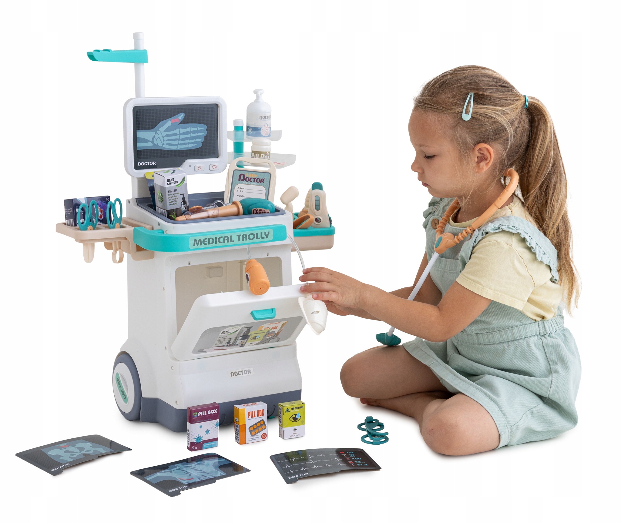 Набор врача, медицинская тележка, интерактивный стол для детей, 26 элементов.