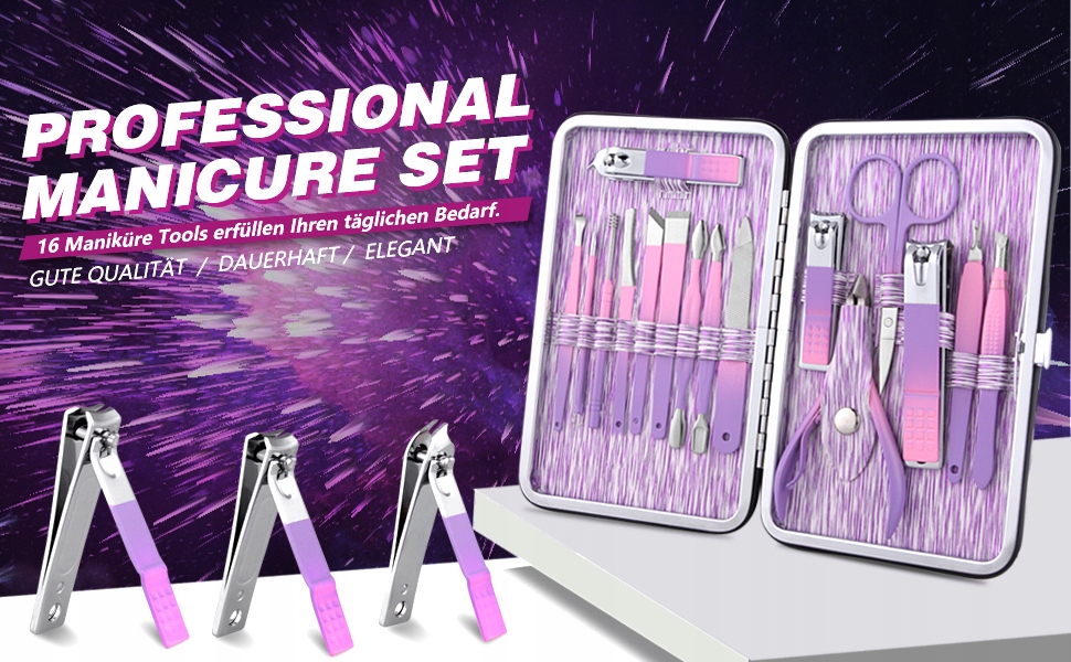 Zestaw Manicure Pedicure 16 częściowy Fioletowy