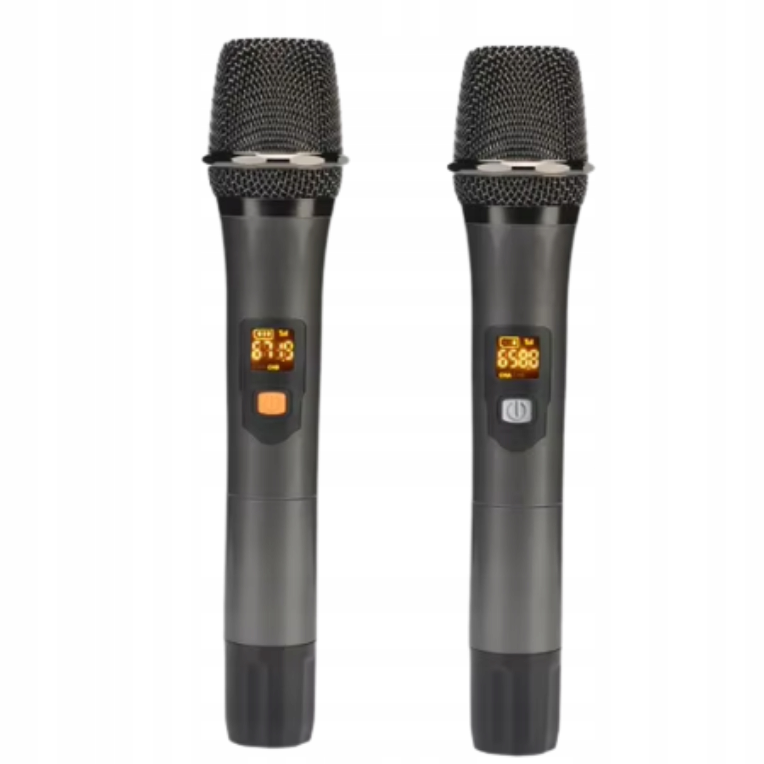 - ✔️ 2 беспроводных УВЧ-микрофона с регулируемой частотой – В комплект входят два Микрофоны УВЧ (диапазон 646,0–685,5 МГц) с питанием от батареек типа АА, которые обеспечивают свободу движений и чистый звук без кабелей — идеально подходят для певцов и ведущих вечеринок.