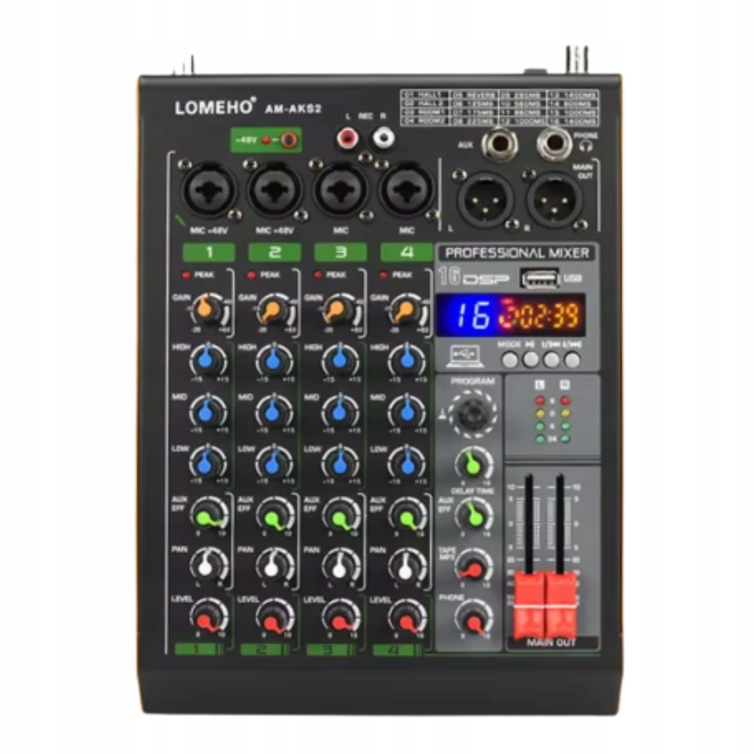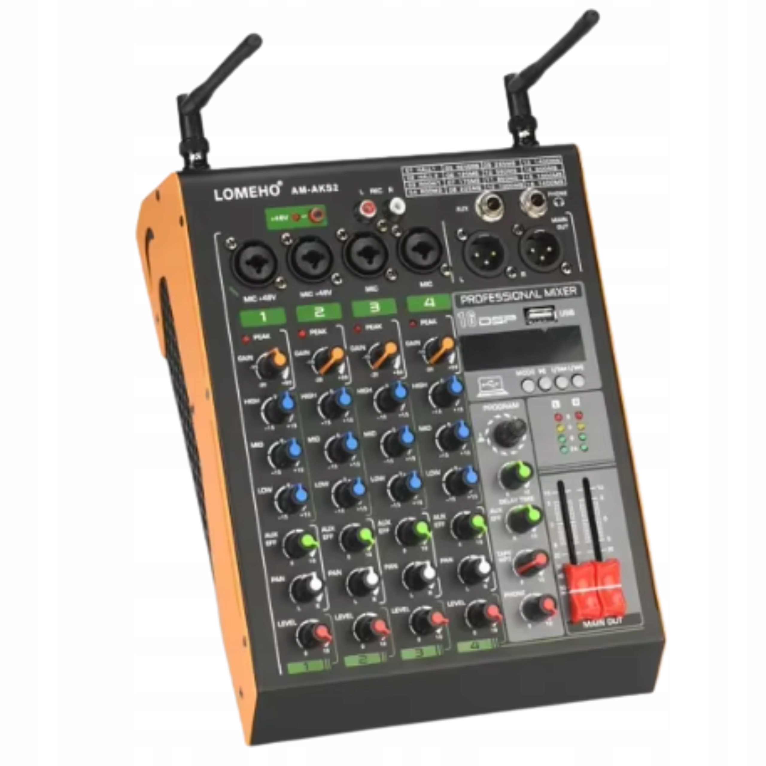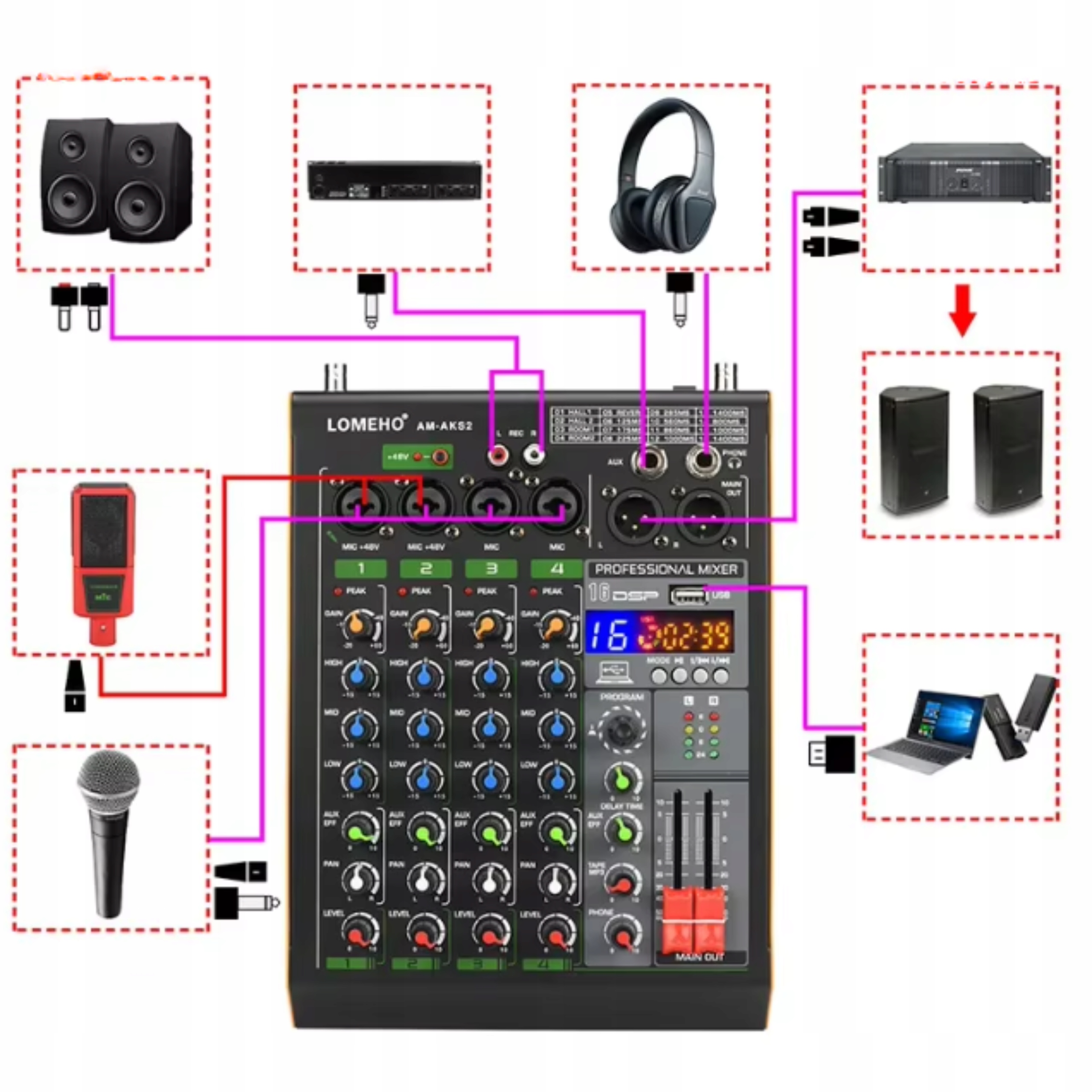 - ✔️ Универсальное использование для караоке и многого другого - Отлично подходит для домашних вечеринок, караоке, записи вокала или небольших живых выступлений - микшер сочетает в себе функциональность с простотой использования, отвечая потребностям любителей и профессионалов.