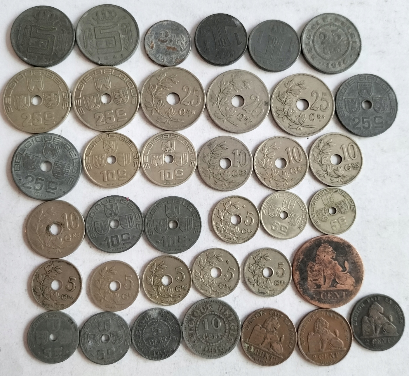 Zestaw monet Belgia 37 szt. przedwojenne każda inna