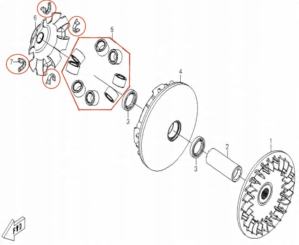 Ремкомплект вариатора Linhai 260 300 ролики (8) + направляющие (4) КОМПЛЕКТ