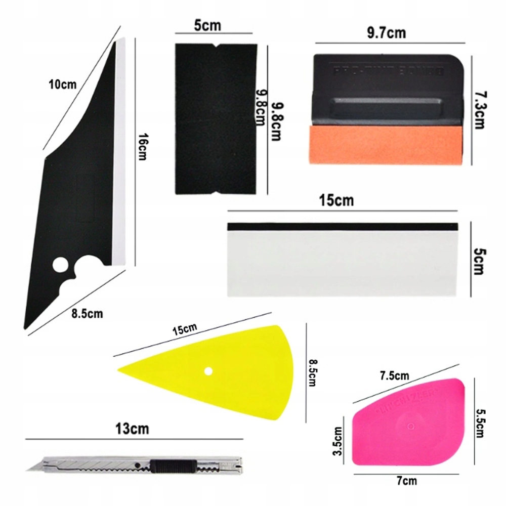 ZESTAW NARZĘDZI RAKLI DO APLIKACJI FOLII OKLEJANIA SZYB KOMPLET 12SZT.