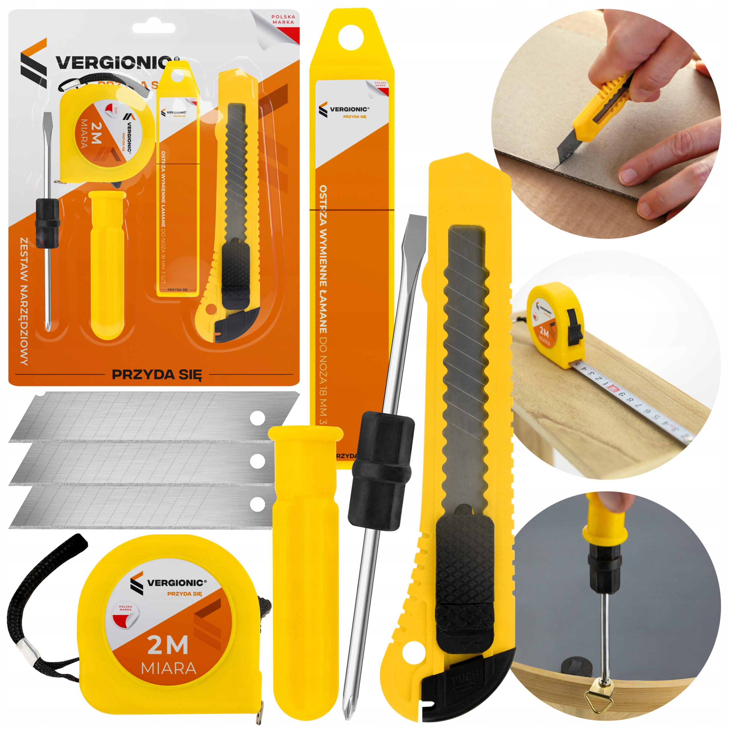 Zestaw Narzędziowy Nóż Miarka Śrubokręt Wkłady Miara Narzędzia