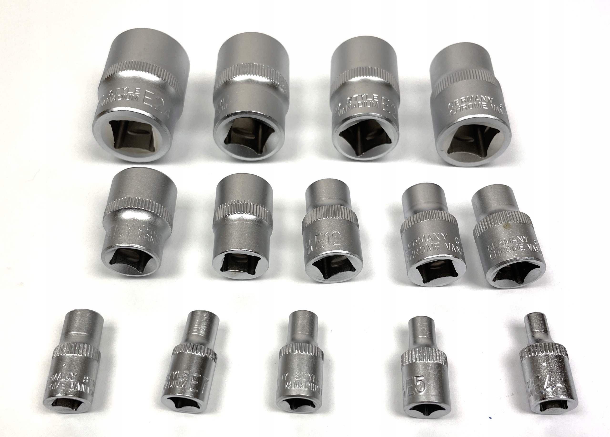 - 5 головок E-TORX 1/4" (размеры: E4, E5, E6, E7, E8)